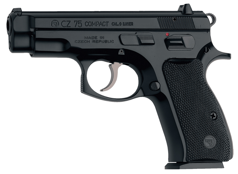 CZ-USA 91190 CZ 75 Compact 9mm Luger 14+1 3.75″ Blued Steel Barrel, Black Serrated Steel Slide, Black Polycoat Steel Frame w/Beavertail, Black Plastic Grip