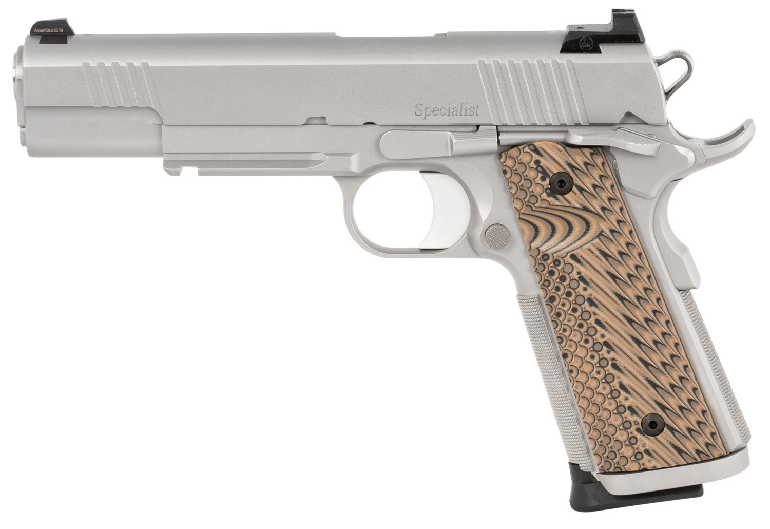 Dan Wesson 01807 Specialist 9mm Luger 10+1 5″ Stainless Steel Barrel, Bead Blasted Serrated Stainless Steel Slide & Frame w/Beavertail & Picatinny Rail, Black/Brown G10 Grip, Ambidextrous