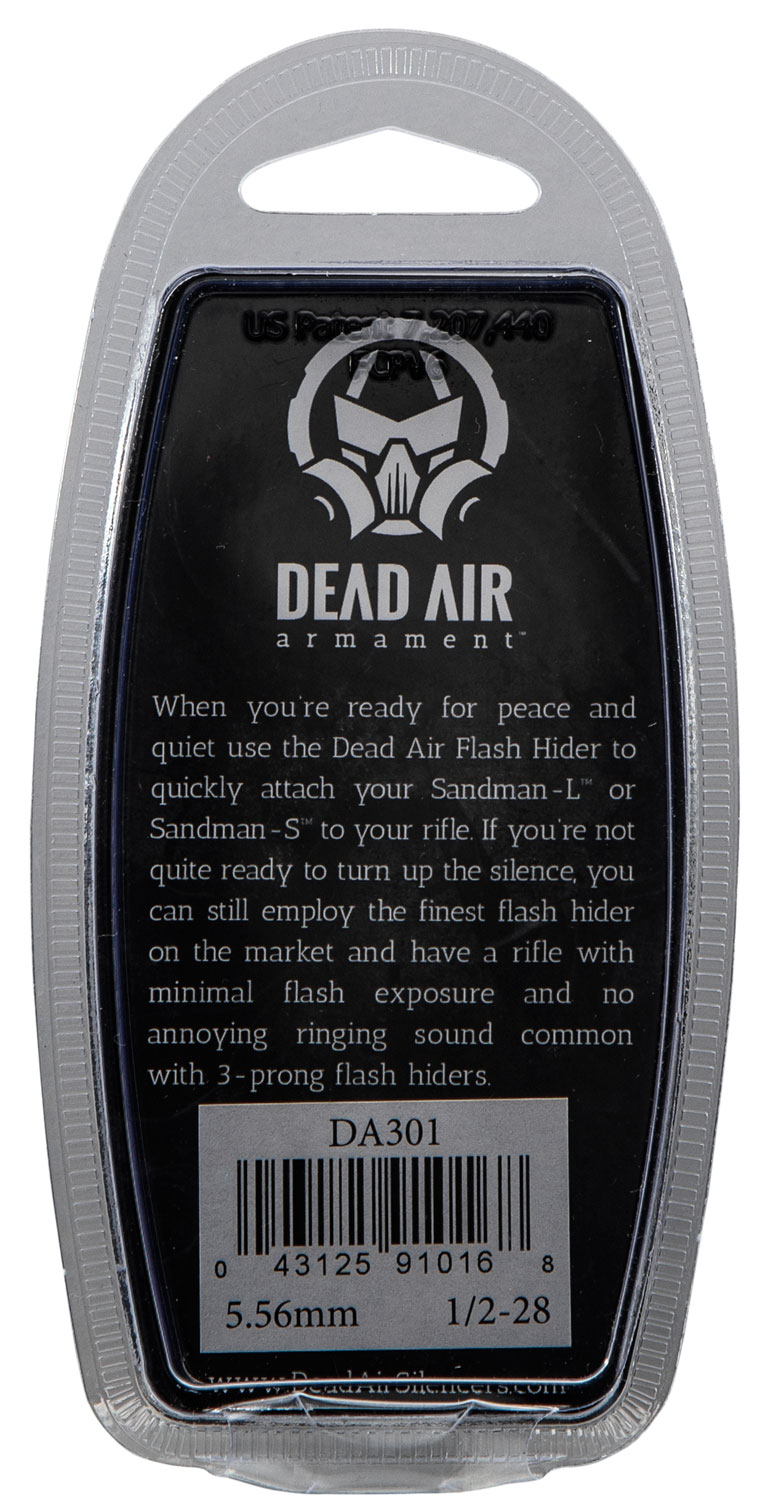 Dead Air DA301 Flash Hider Black with 1/2″-28 tpi Threads & 2.70″ OAL for 5.56x45mm NATO Sandman Series, KeyMod Equipped Nomad-30 & Primal Suppressors
