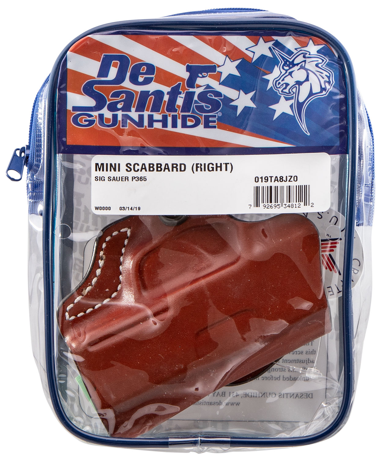 DeSantis Gunhide 019TA8JZ0 Mini Scabbard OWB Tan Leather Belt Slide Fits Sig P365 Right Hand