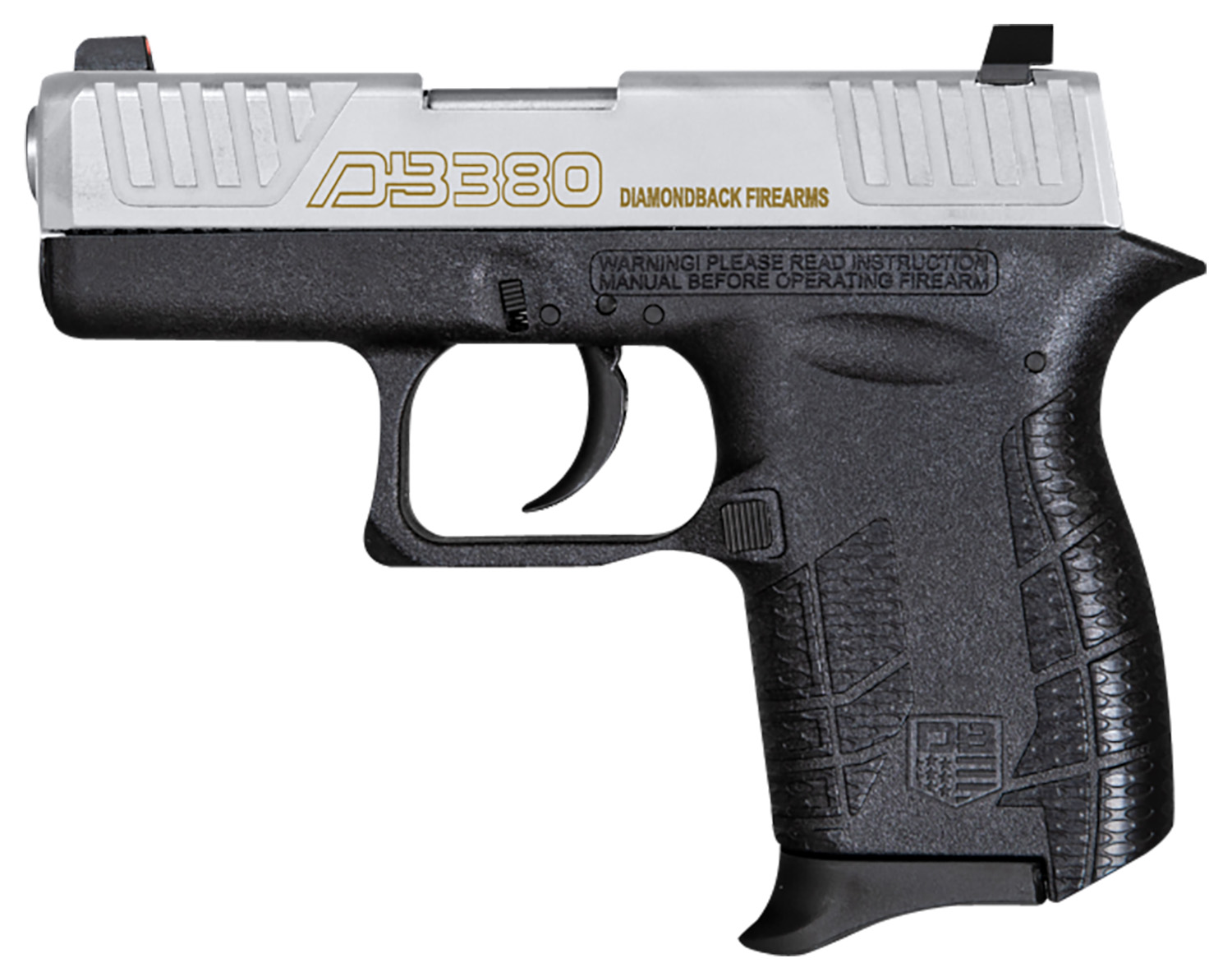 Diamondback DB0100E022 DB380 Gen4 Micro-Compact Frame 380 ACP 6+1, 2.80″ Stainless Steel Barrel, Nickel Boron Serrated Stainless Steel Slide, Black Polymer Frame w/Beavertail & Grip