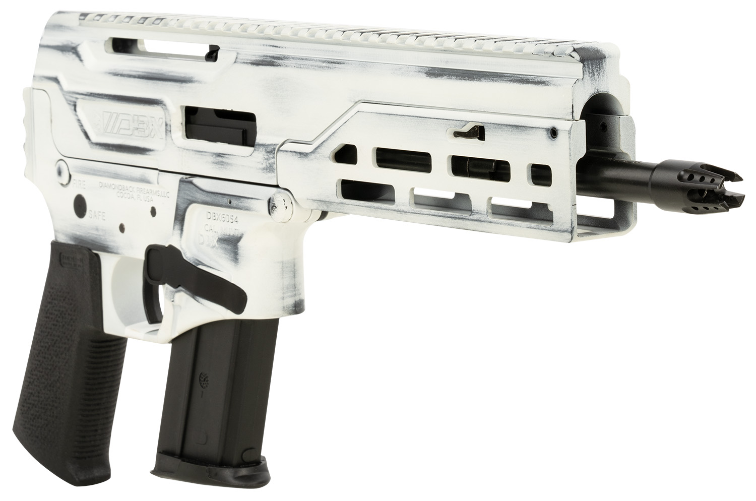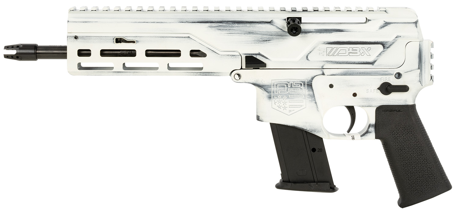 Diamondback DB1614L401 DBX CF 5.7x28mm 8″ 20+1, Battleworn Storm Tropper White Rec, Picatinny End Cap, Black Magpul K Grip