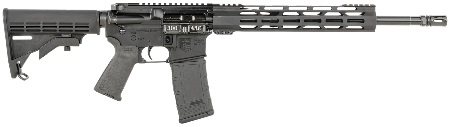 Diamondback DB175AB001 DB15 300 Blackout 30+1 16″ Black Nitride Barrel, A2 Flash Hider, 7075-T6 Aluminum Receiver, 6 Position Stock, Magpul MOE Grip, 12″ M-Lok Handguard, Manual Safety, Optics Ready