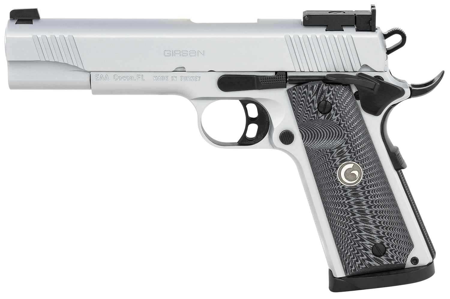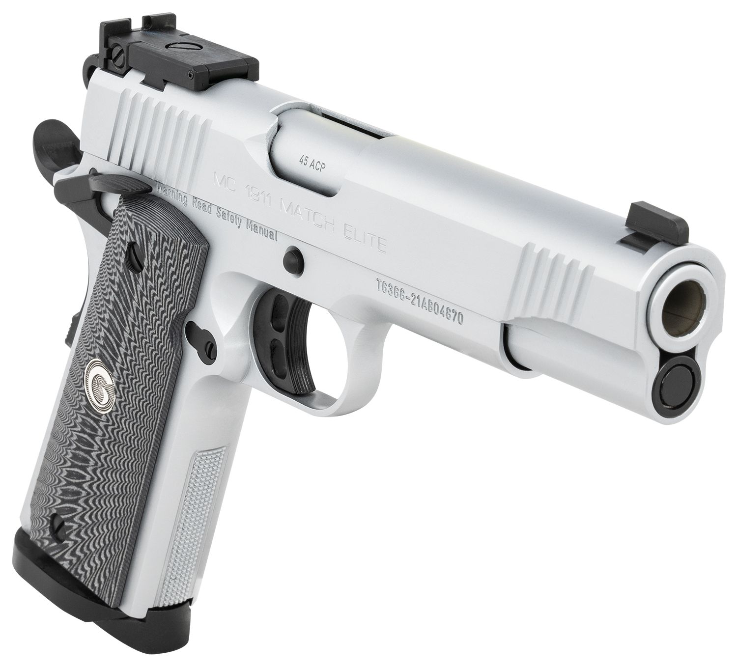 EAA GIRSAN 390095 MC1911 S Match Elite Full Size Frame 45 ACP 8+1, 5″ Matte Stainless Match Grade Barrel, Serrated Steel Slide & Frame w/Beavertail, Black/Gray G10 Grip, Ambidextrous