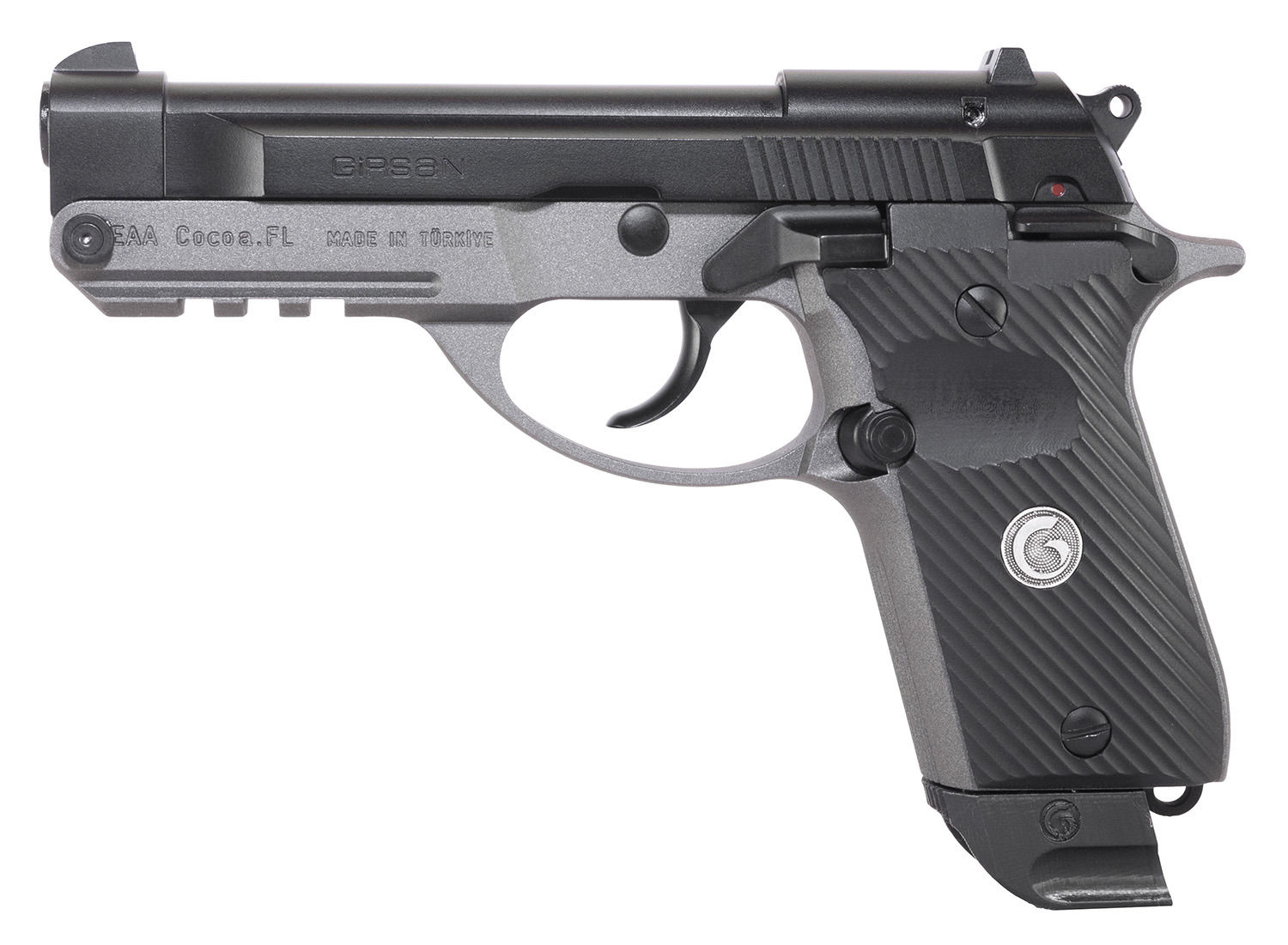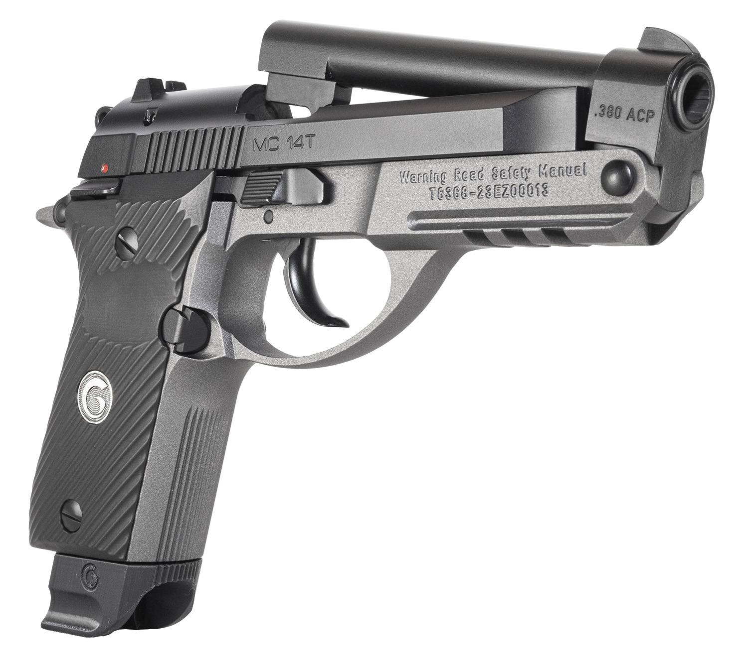 EAA GIRSAN 390855 MC 14T Solution Compact Frame 380 ACP 13+1, 4.50″ Black Steel Tip-Up Barrel & Serrated Steel Slide, Matte Stainless Aluminum Frame w/Picatinny Rail, Black Polymer Grip, Ambidextrous