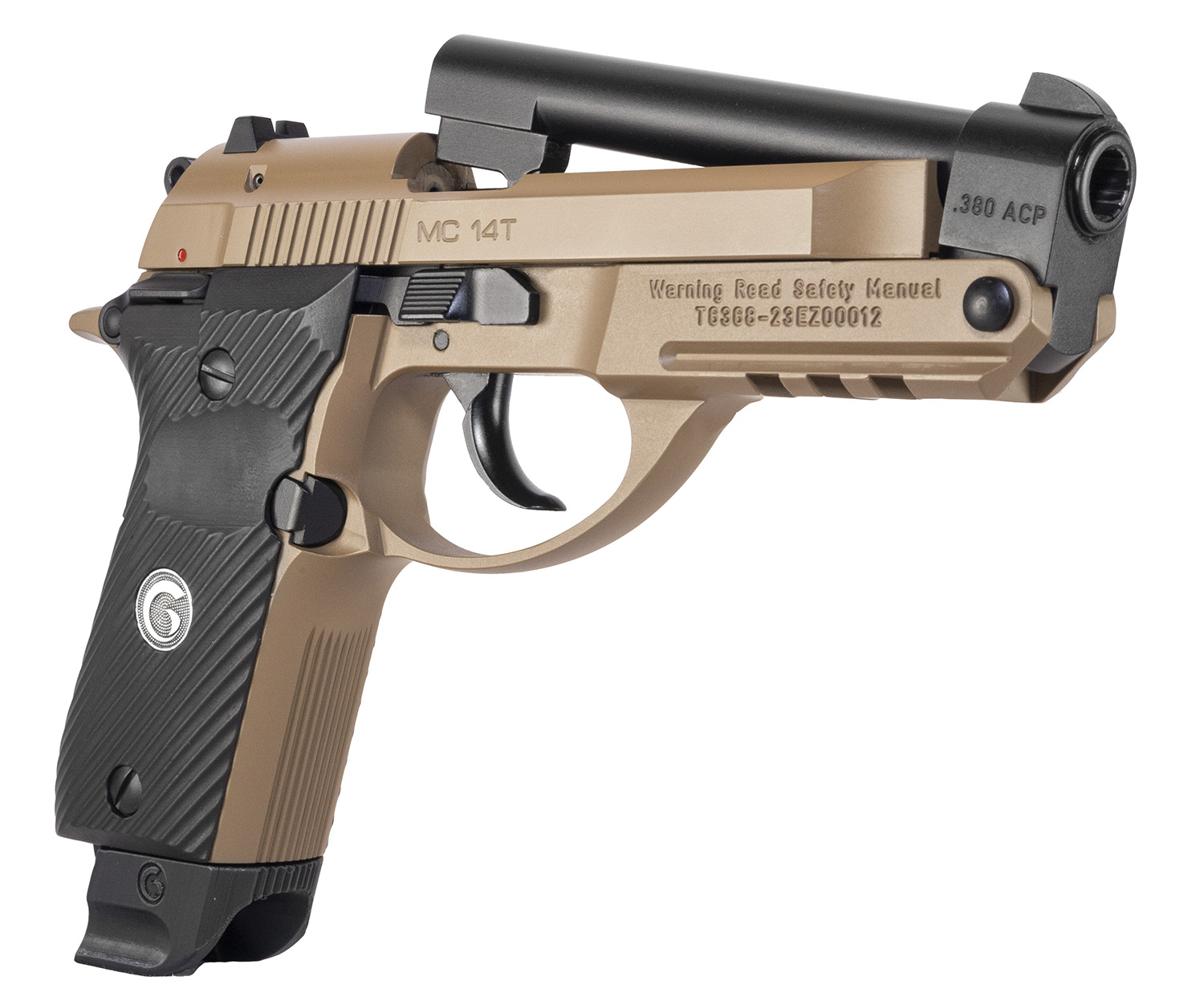 EAA GIRSAN 390860 MC 14T Solution Compact Frame 380 ACP 13+1, 4.50″ Black Steel Tip-Up Barrel, Flat Dark Earth Serrated Steel Slide & Aluminum Frame w/Picatinny Rail, Black Grip, Ambidextrous