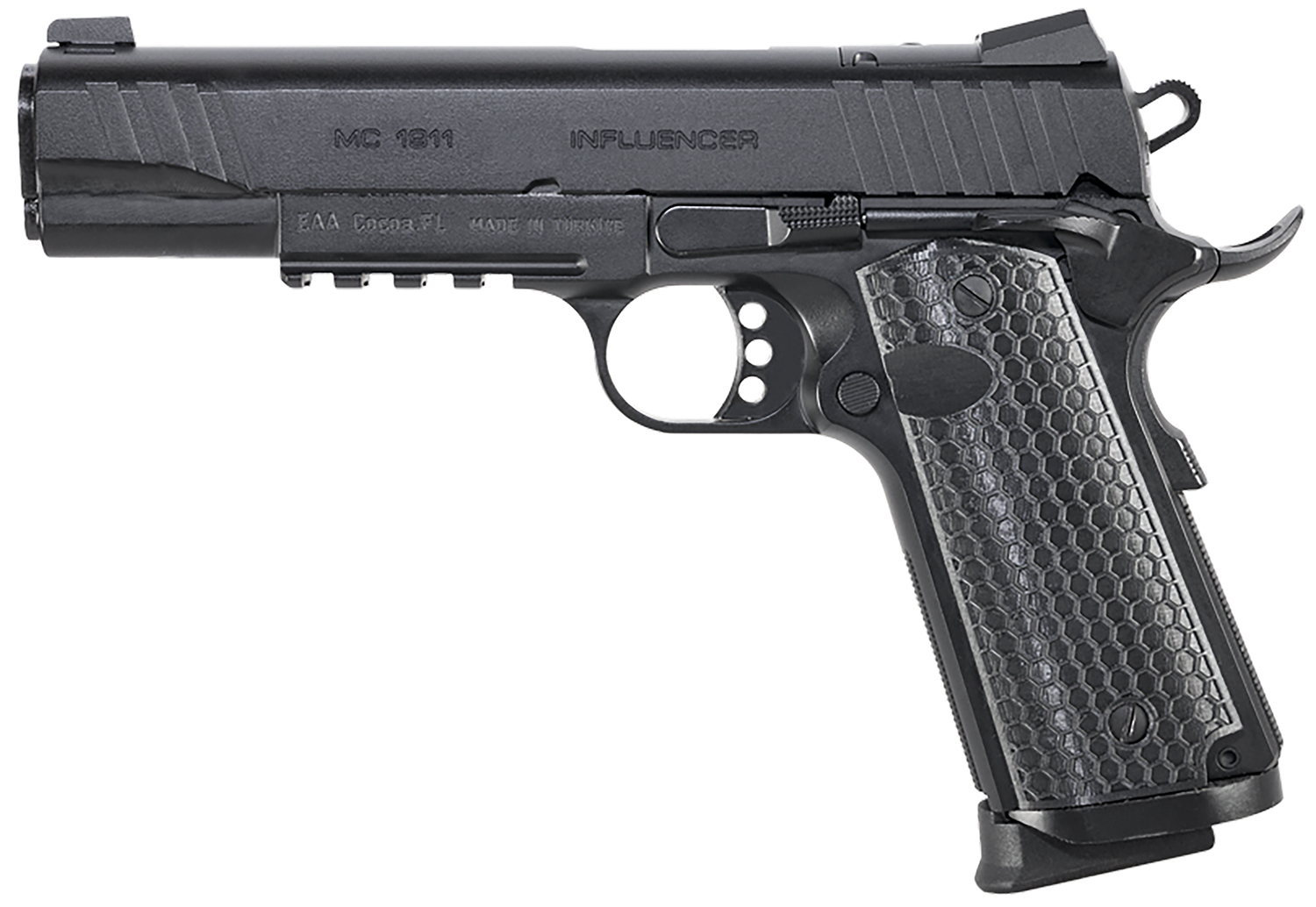 Girsan 391048 MC1911 S Influencer Full Size 10mm Auto 9+1 5″ Blued Steel Barrel, Black Optic Ready/Serrated Steel Slide & Frame w/Picatinny Rail & Beavertail, Black Polymer Grip