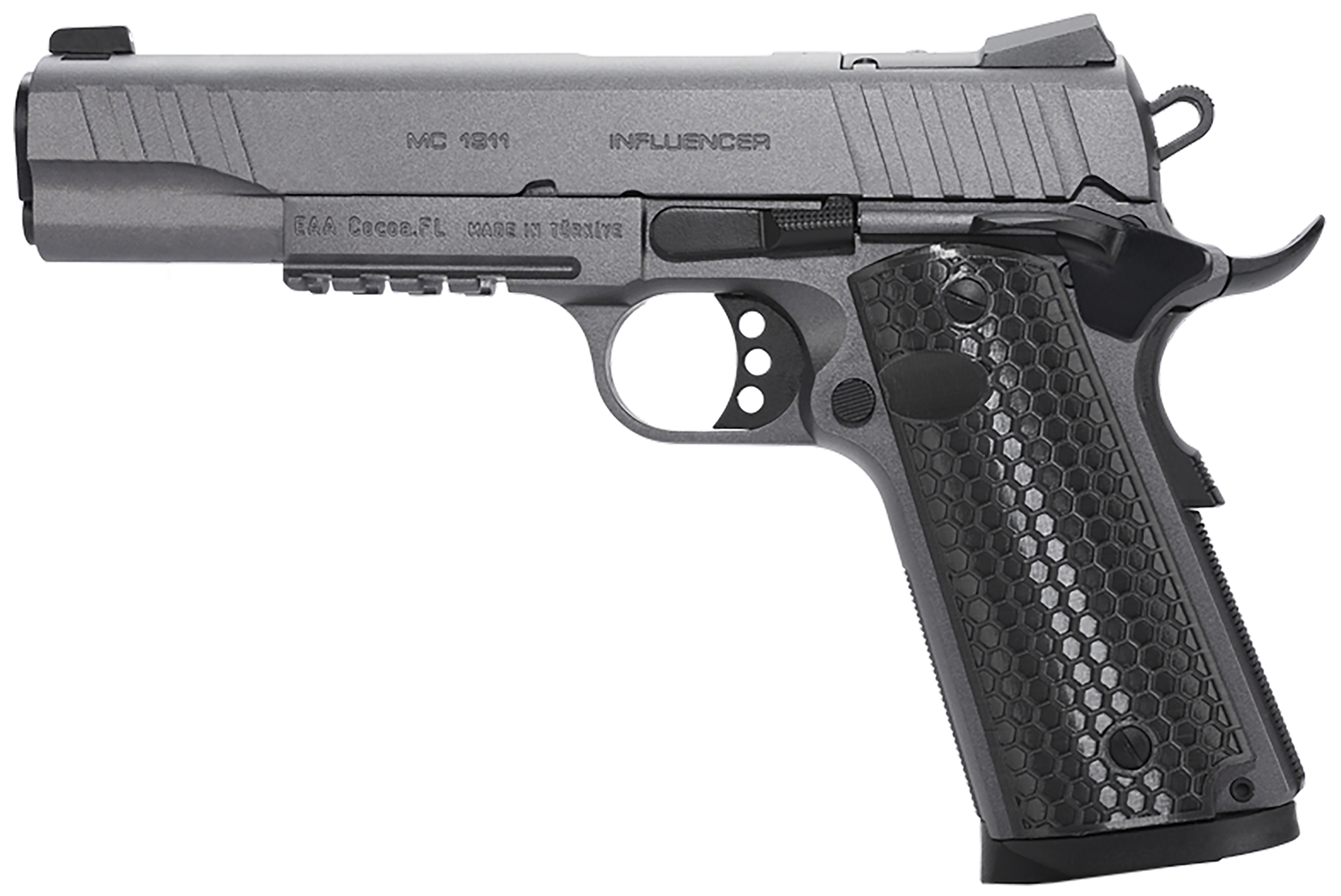 Girsan 391148 MC1911 S Influencer Full Size 10mm Auto 9+1 5″ Black Steel Barrel, Tungsten Gray Cerakote Optic Ready/Serrated Steel Slide & Frame w/Picatinny Rail & Beavertail, Gray Polymer Grip