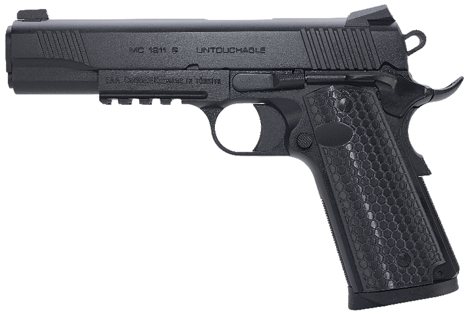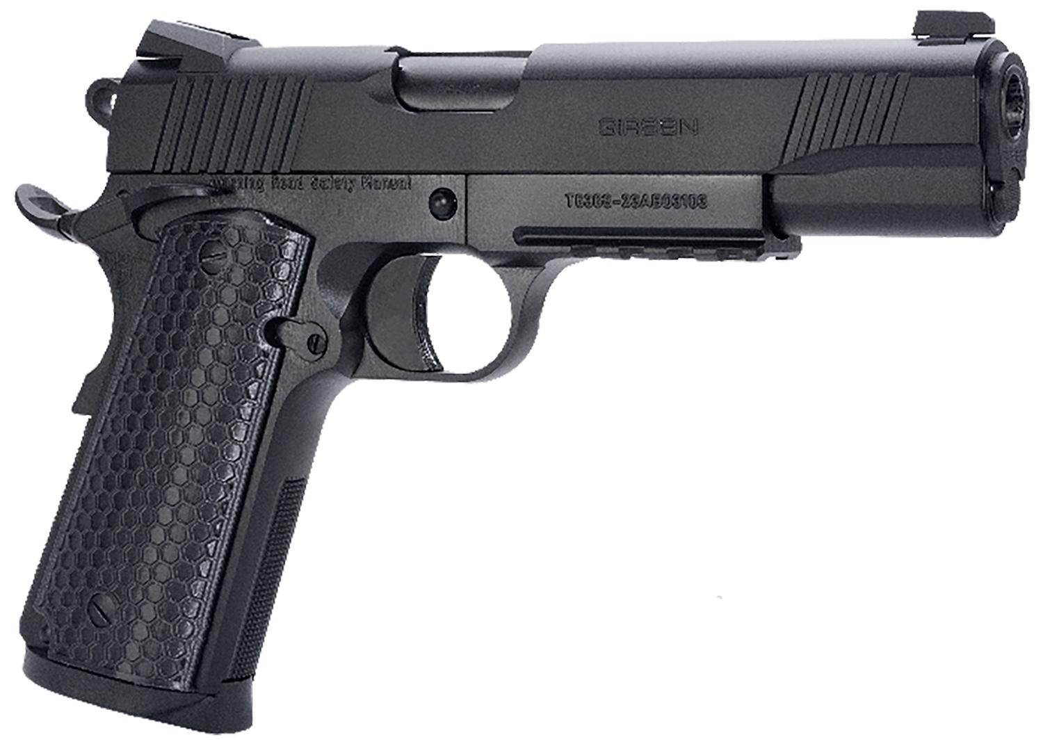 Girsan 392060 MC1911 S Untouchable Full Size 45 ACP 8+1 5″ Black Steel Barrel, Black Serrated Steel Slide & Frame w/Beavertail & Picatinny Rail, Black Polymer Grip