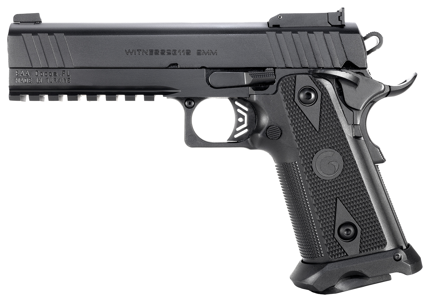 Girsan 395029 Witness2311 9mm Luger 17/20+1 5″ Black Steel Barrel, Black Serrated Steel Slide, Black Polymer Frame w/Beavertail & Picatinny Rail, Black Checkered Polymer Grip, Ambidextrous