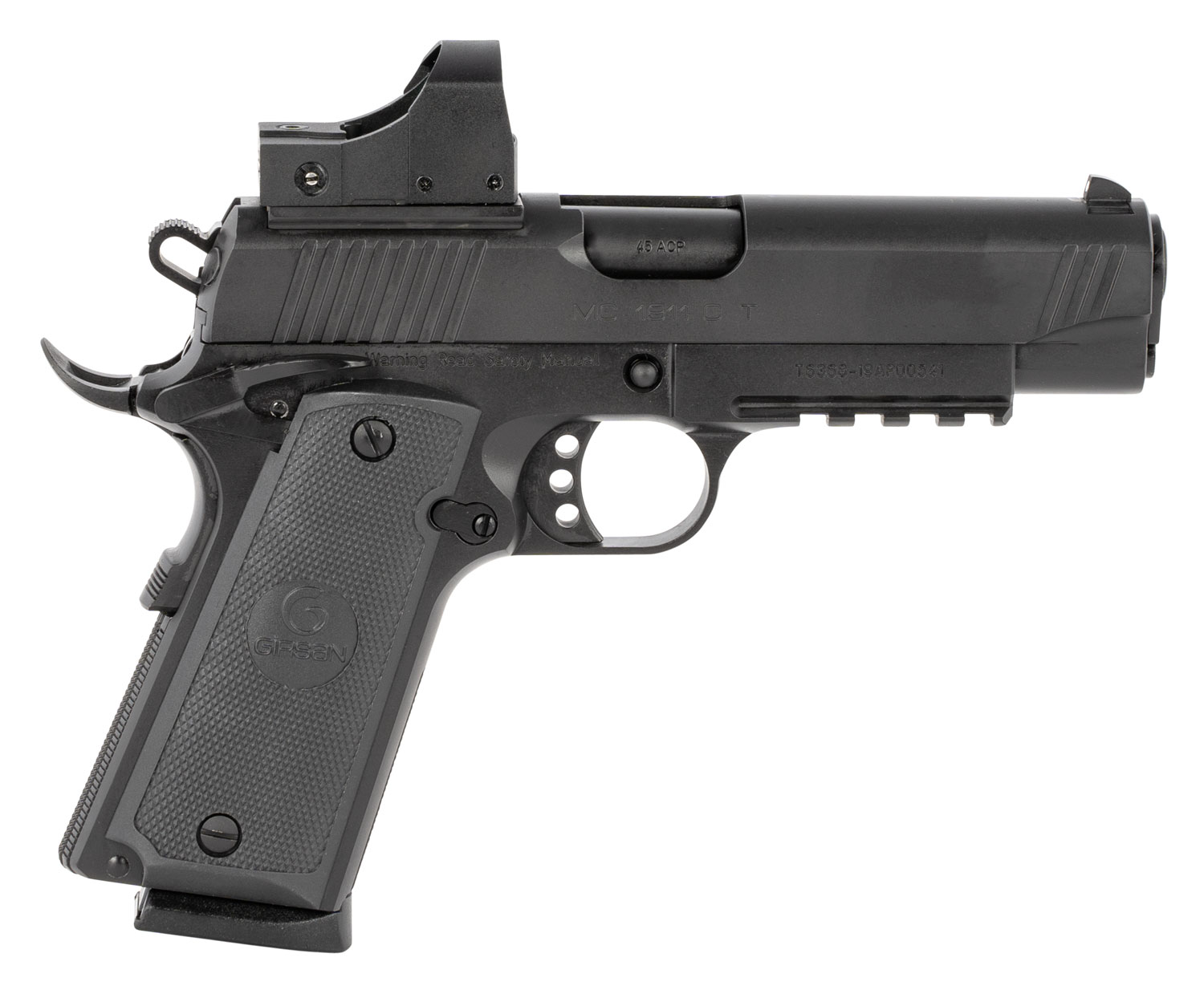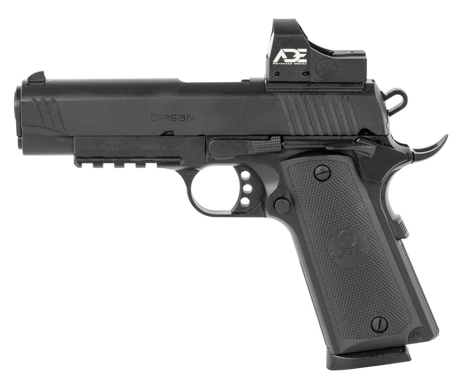 EAA GIRSAN 390071 MC1911 C TV Carry 45 ACP 8+1 4.40″ Black Steel Barrel, Blued Optic Ready/Serrated Slide, Black Steel Frame w/Picatinny Rail & Beavertail, Ambidextrous, Red Dot