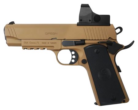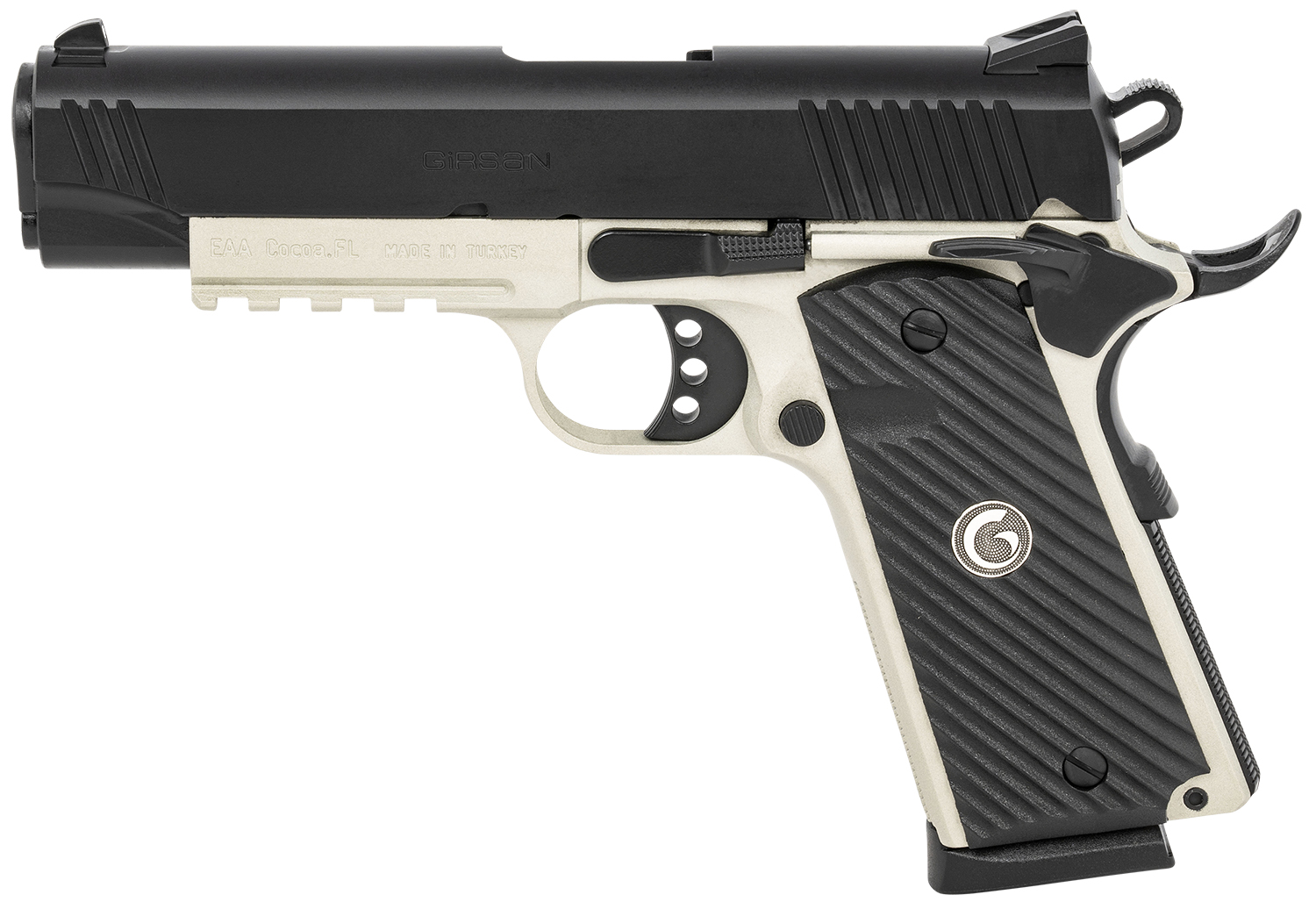 EAA GIRSAN 390072 MC1911 Commander Carry Frame 45 ACP 8+1, 4.40″ Black Steel Barrel, Blued Serrated Slide, Matte Gray Steel Frame w/Beavertail & Picatinny Rail, Laminate Grip, Ambidextrous