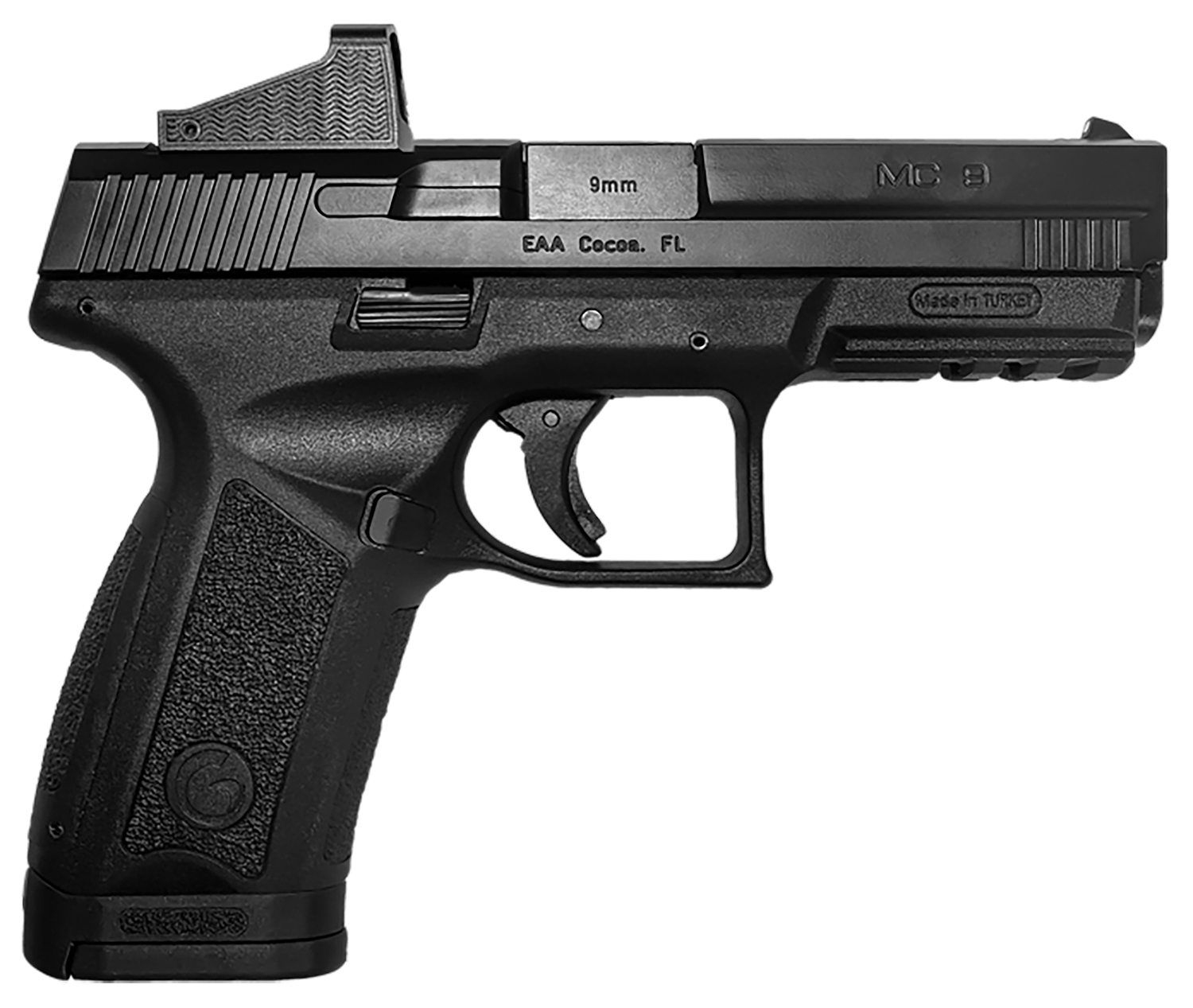 EAA GIRSAN 390350 MC9 TV 9mm Luger 17+1 4.20″ Black Steel Barrel Blued Optic Ready/Serrated Steel Slide Black Polymer Frame w/Picatinny Rail, EAA Far-Dot Red Dot, Ambidextrous