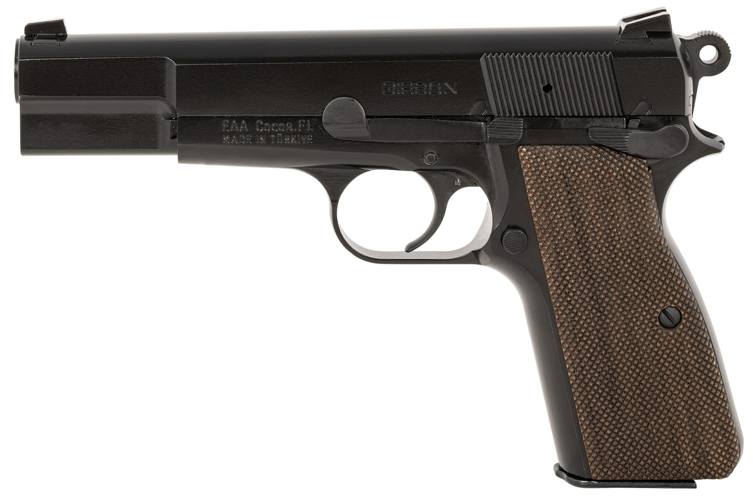 EAA GIRSAN 390454 MCP 35 Sports South Exclusive 9mm Luger 15+1, 4.87″ Black Steel Barrel, Black Cerakote Serrated Steel Slide, Black Steel Frame w/Beavertail, Walnut Grip, Ambidextrous