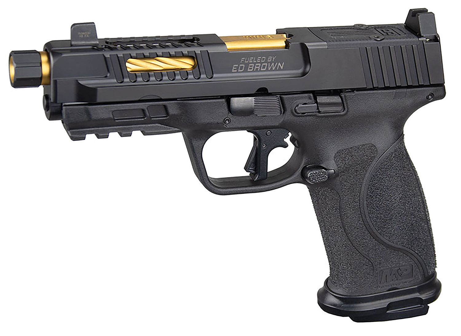 Ed Brown MPF4 Fueled M&P F4 9mm Luger 4.25″ 17+1 Overall Black Nitride Finish with Stainless Steel Slide, Polymer Grip & Gold Finish Barrel