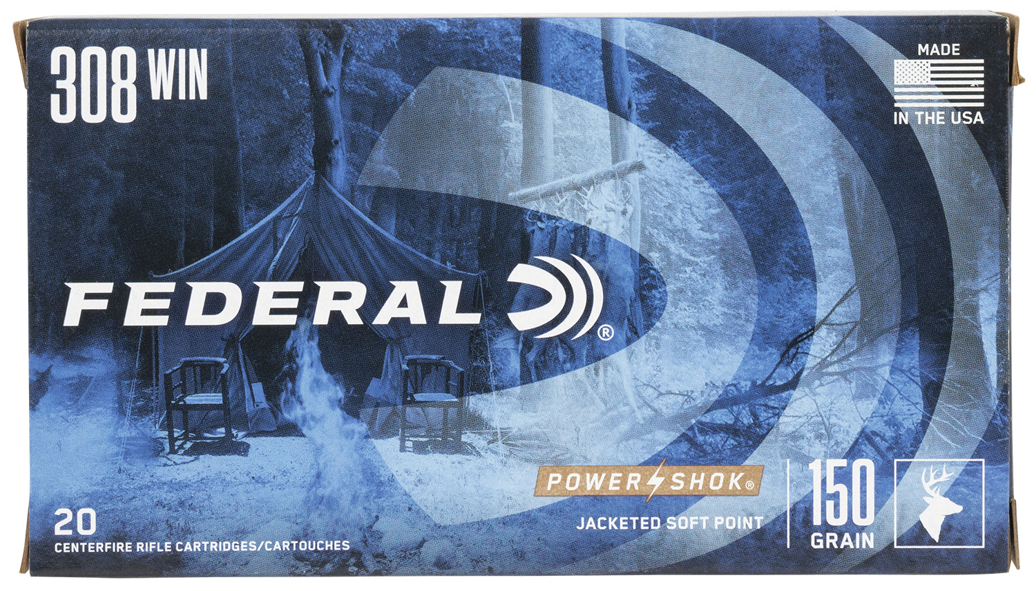 Federal 308A Power-Shok 308Win 150gr Jacketed Soft Point 20 Per Box/10 Case