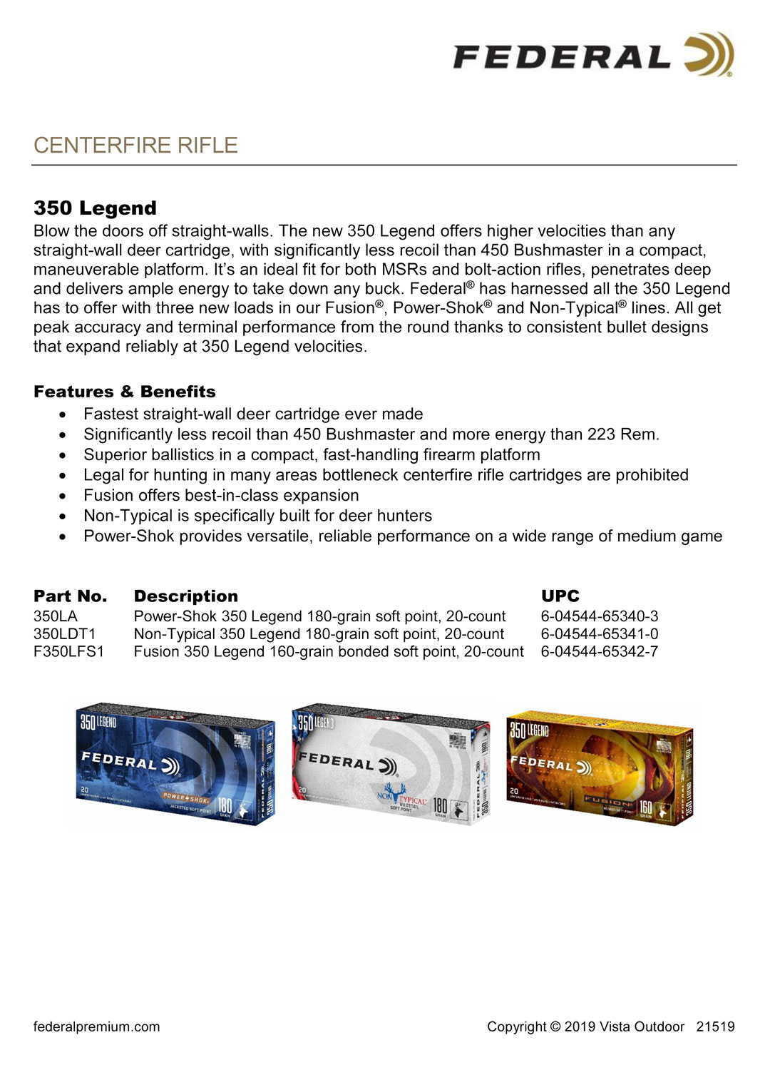 Federal 350LA Power-Shok 350Legend 180gr Jacketed Soft Point 20 Per Box/10 Case