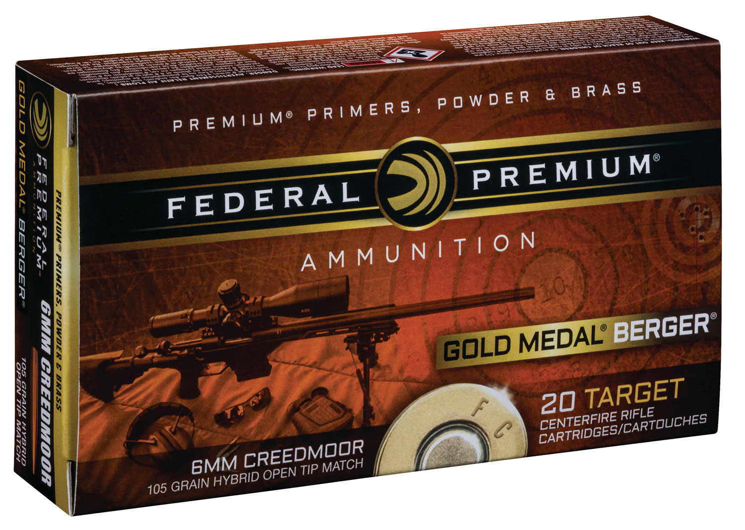 Federal GM65CRDBH1 Premium Gold Medal 6mmCreedmoor 105gr Berger Hybrid Open Tip Match 20 Per Box/10 Case