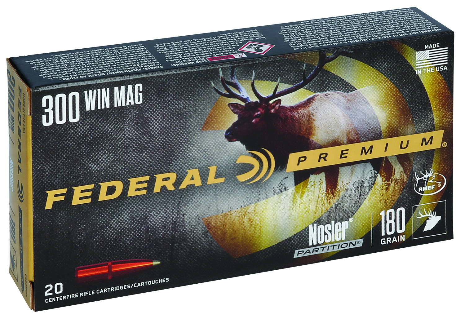 Federal P300WD2 Premium 300WinMag 180gr Nosler Partition 20 Per Box/10 Case