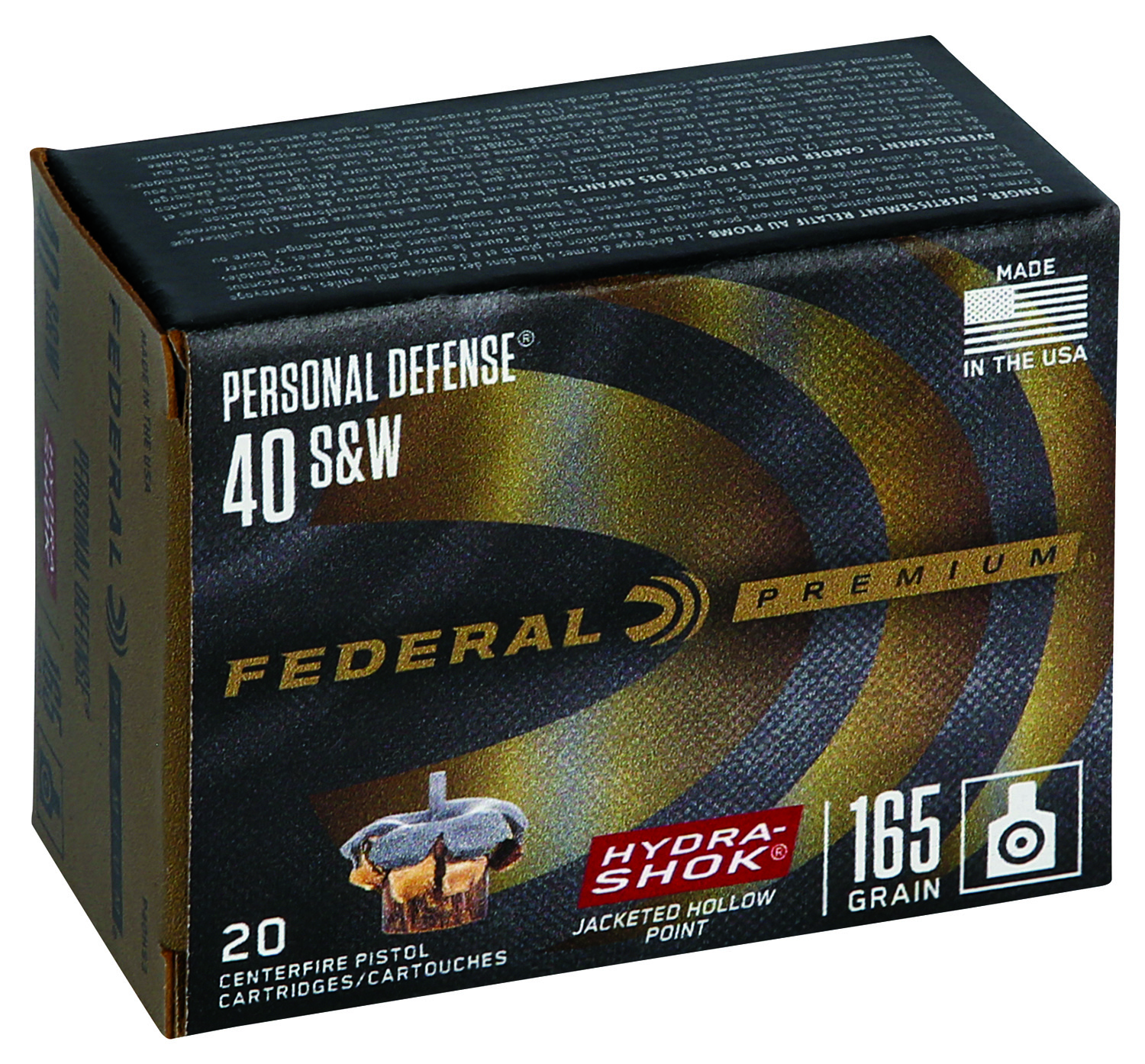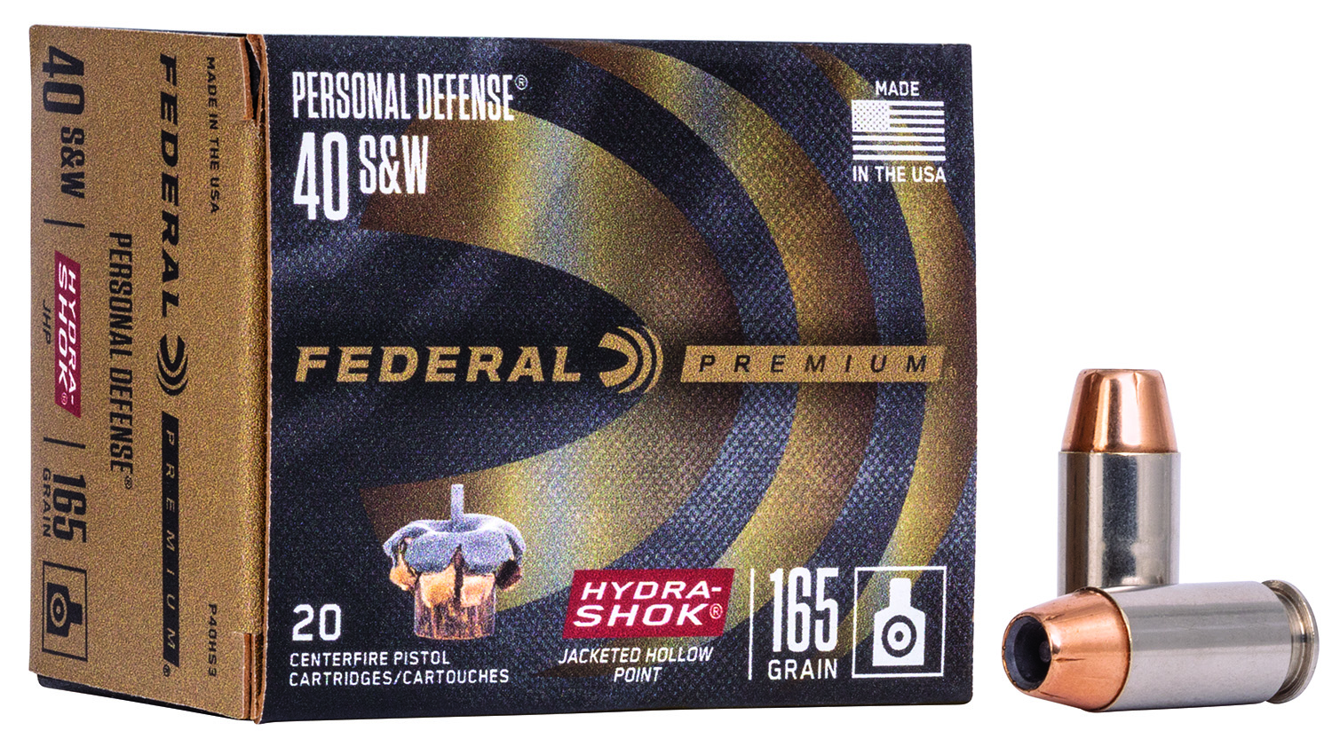 Federal P40HS3 Premium Personal Defense 40S&W 165gr Hydra-Shok Jacketed Hollow Point 20 Per Box/25 Case