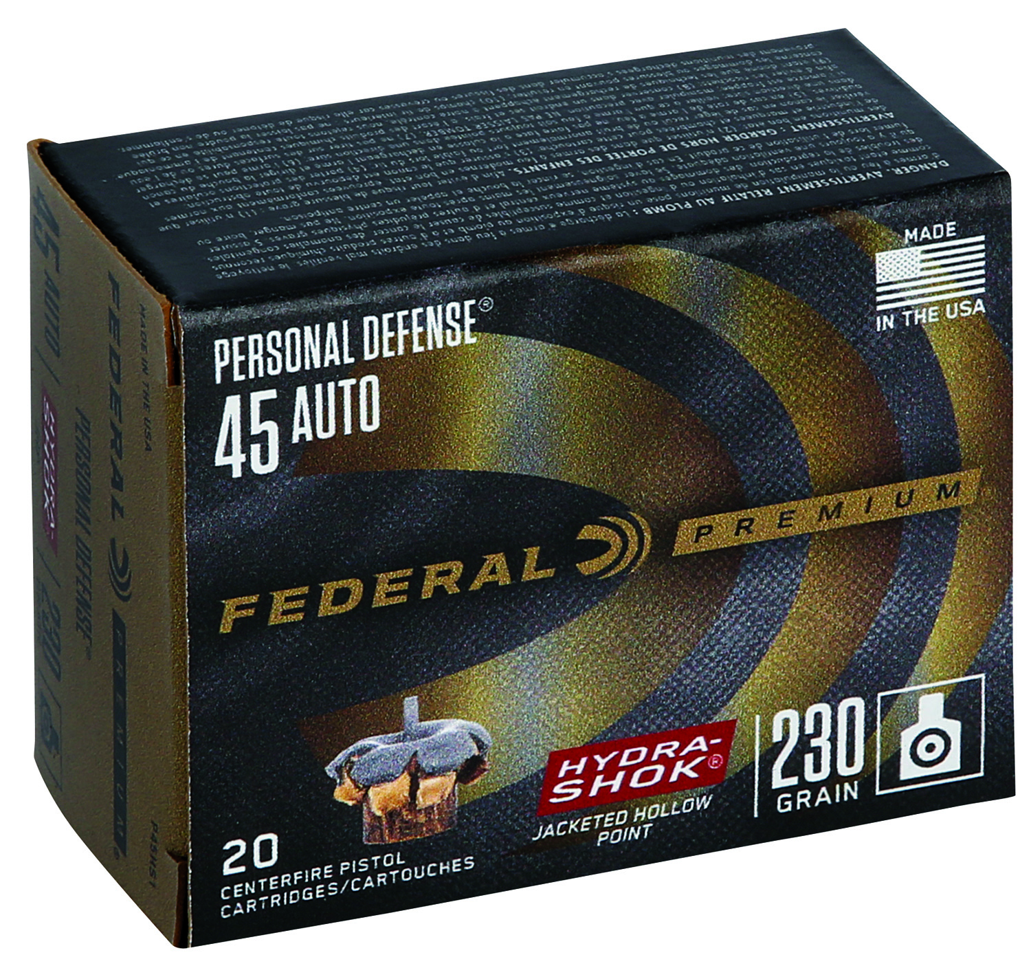 Federal P45HS1 Premium Personal Defense 45ACP 230gr Hydra-Shok Jacketed Hollow Point 20 Per Box/25 Case