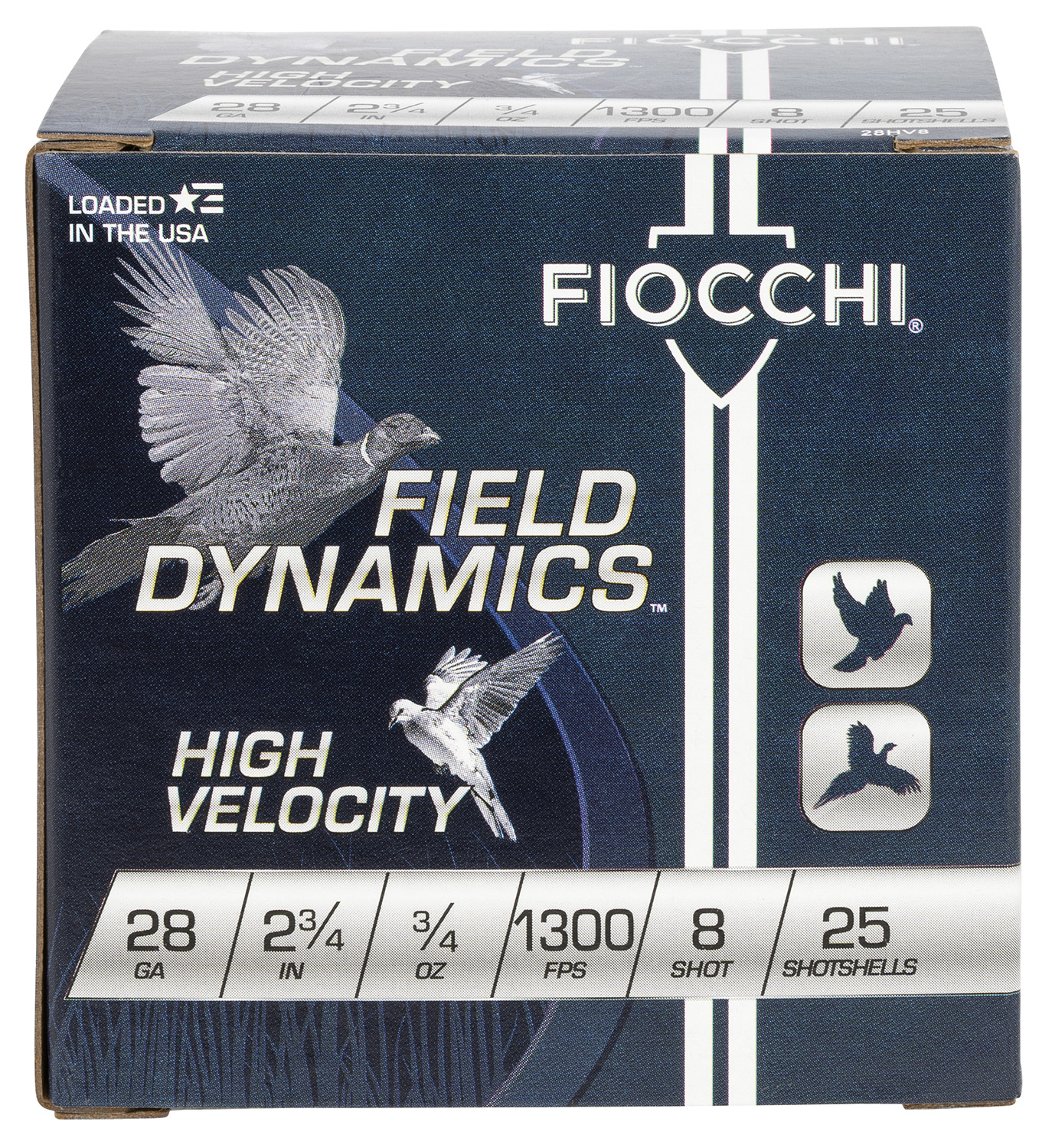 Fiocchi 28HV8 Field Dynamics High Velocity 28Gauge 2.75″ 3/4oz 8Shot 25 Per Box/10 Case