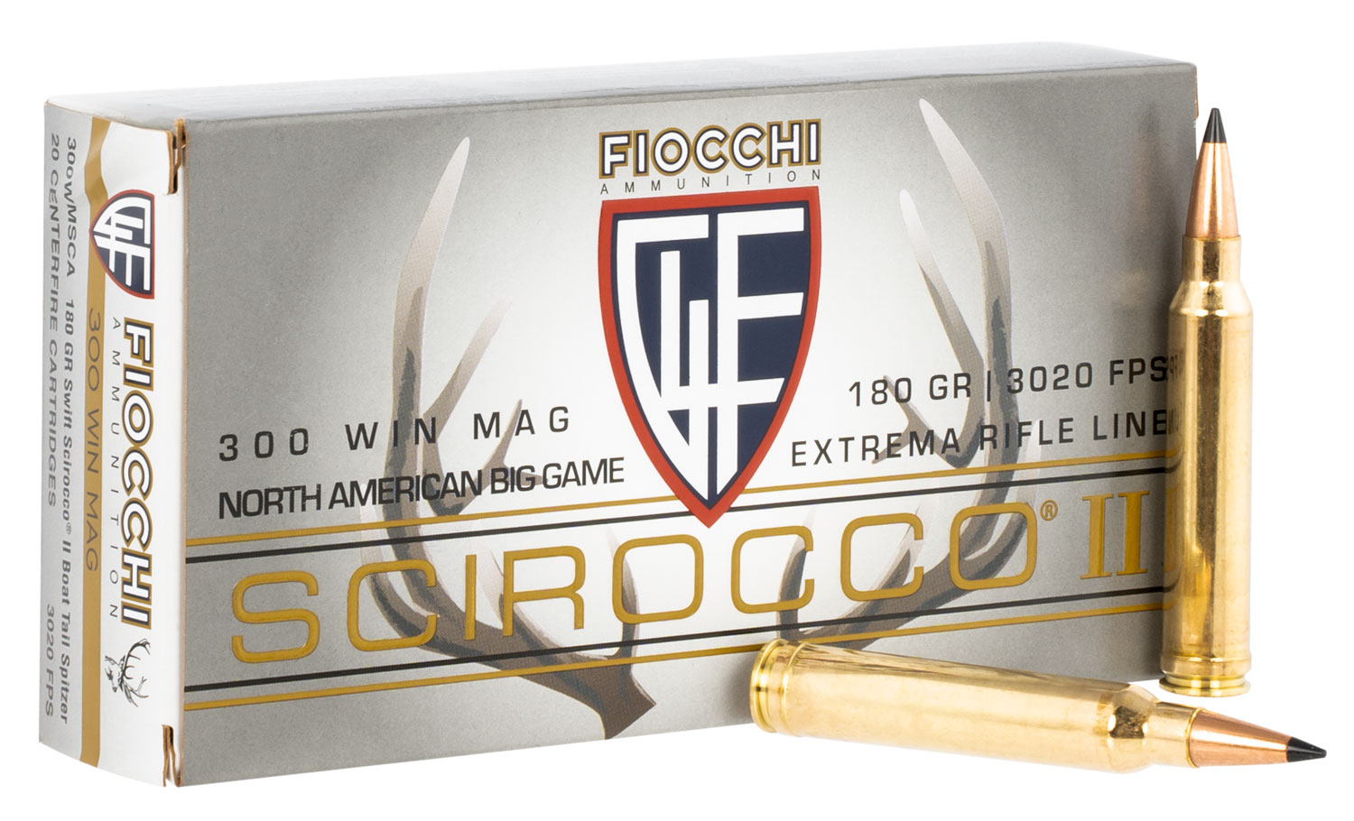 Fiocchi 300WMSCA Hyperformance 300WinMag 180gr Swift Scirocco II Boat Tail Spitzer 20 Per Box/10 Case