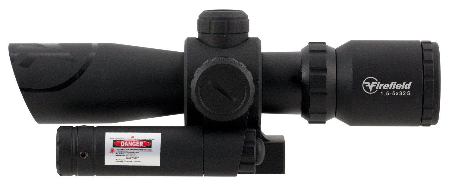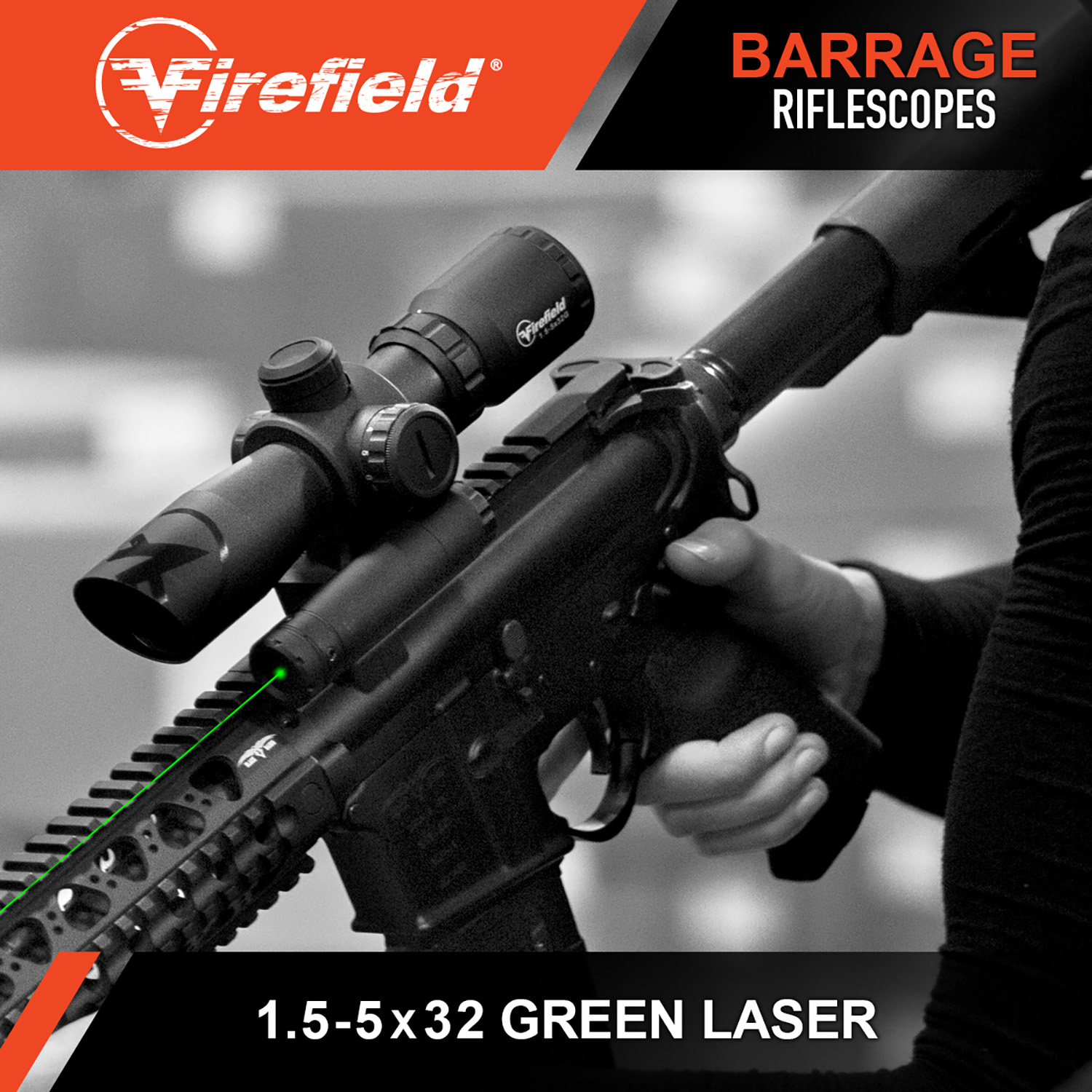 Firefield FF13063 Barrage w/Green Laser Matte Black 1.5-5x32mm Illuminated Red/Green Mil-Dot Reticle/Green Laser