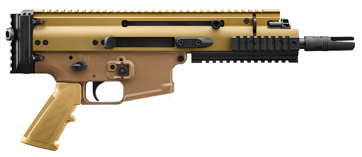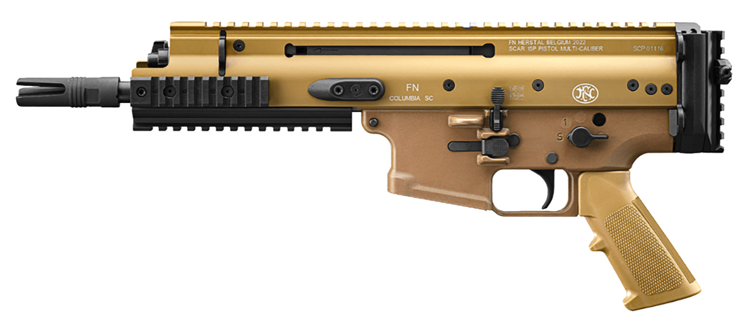 FN 38101241 SCAR 15P 5.56x45mm NATO 30+1 7.50″ Chrome-Lined Barrel w/3 Prong Flash Hider, Flat Dark Earth Finish, Mil-Std 1913 Accessory Rail & End Cap, A2 Polymer Grip, Ambidextrous
