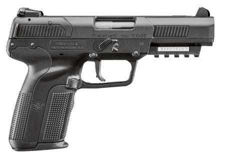 FN 3868929352 Five-seveN *CA Compliant 5.7x28mm 10+1 4.80″ Black Steel Barrel, Black Serrated Steel Slide & Polymer Frame w/Picatinny Rail, FDE Textured Polymer Grip, Ambidextrous