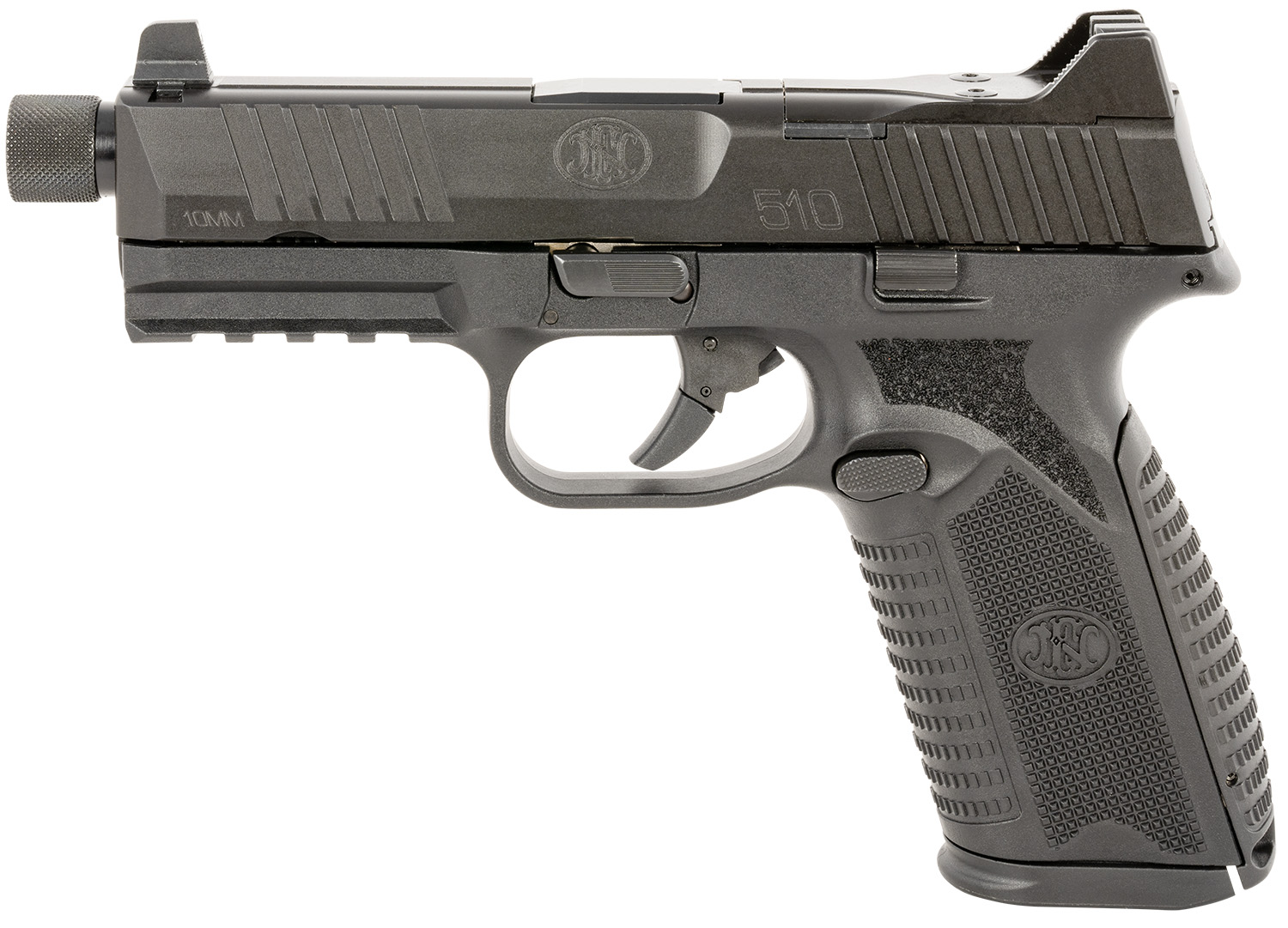 FN 66101375 510 Tactical Full Size Frame 10mm Auto 22+1, 4.71″ Black Target Crown Steel Barrel, Black PVD Optic Cut/Serrated Steel Slide & Polymer Frame w/Picatinny Rail, Ambidextrous