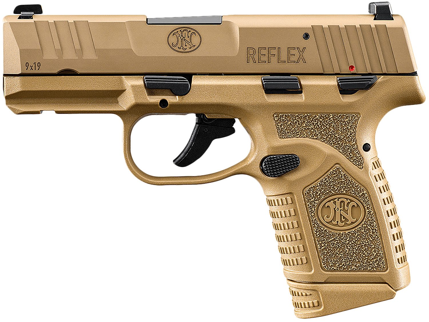 FN 66101421 Reflex 9mm Luger 10+1 3.30″ Micro-Compact Frame Flat Dark Earth PVD Serrated Steel Slide w/Picatinny Rail Stippled Grip Ambidextrous