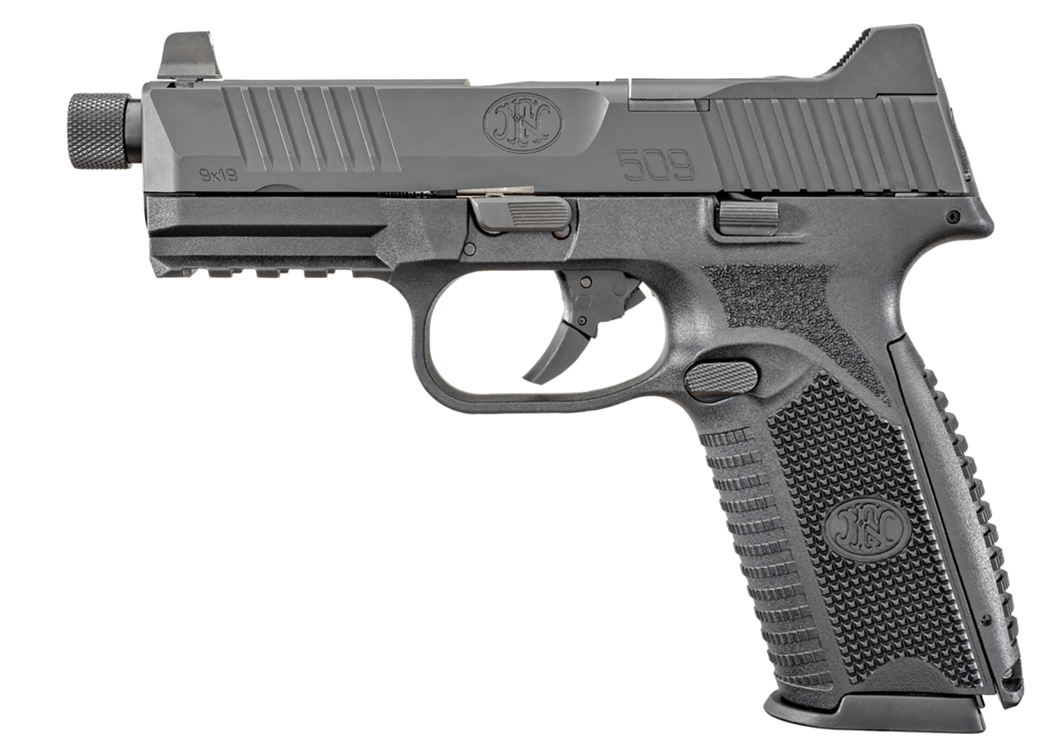 FN 66100527 509T 9mm Luger 10+1, 4.50″ Black Steel Threaded Barrel, Matte Black Optic Ready/Serrated Stainless Steel Slide, Matte Black Polymer Frame w/Picatinny Rail