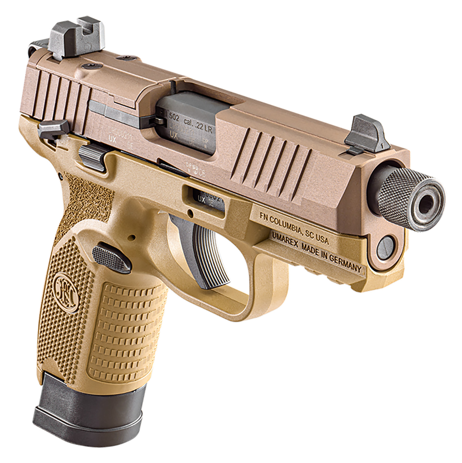 FN 66101009 502 Tactical 22 LR 10+1 4.60″ Black Steel Threaded Barrel, Flat Dark Earth Optic Ready/Serrated Slide & Polymer Frame w/Picatinny Rail, FDE Textured Polymer Grip, Ambidextrous