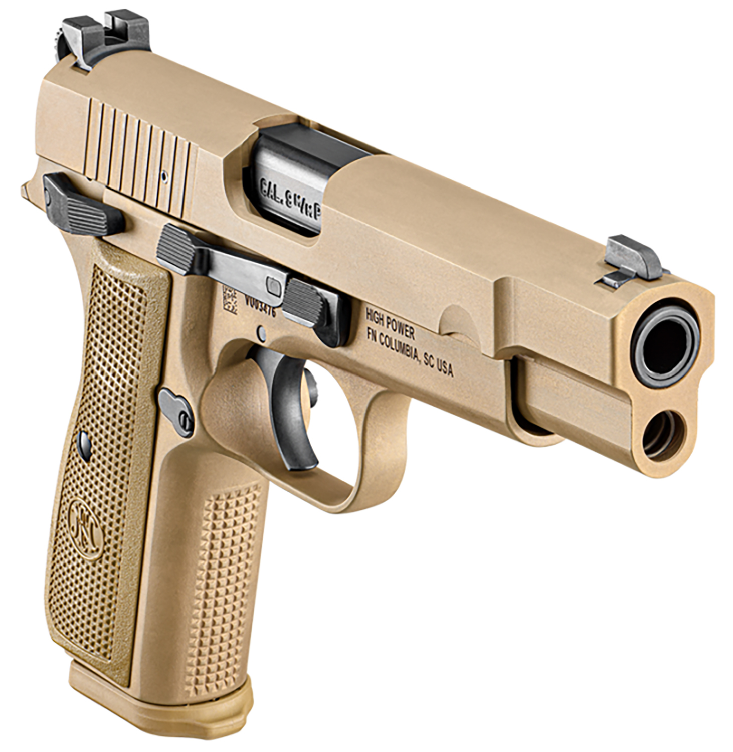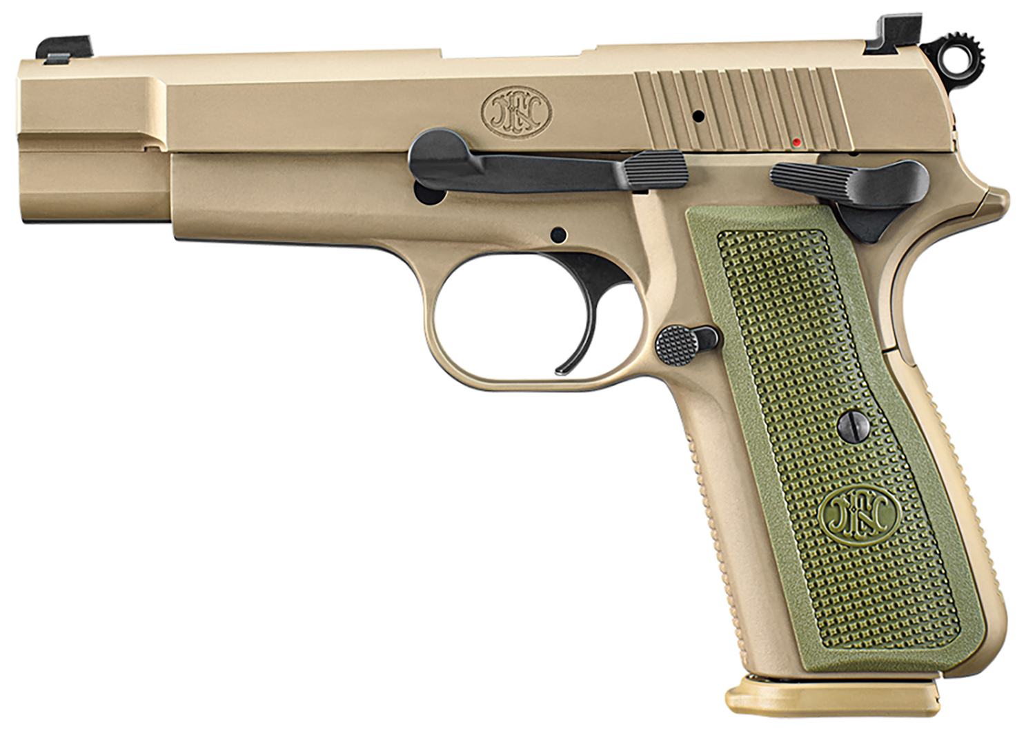 FN 66101117 High Power 9mm Luger 10+1, 4.70″ Black Target Crown Steel Barrel, Flat Dark Earth PVD Serrated Steel Slide & Steel Frame w/Beavertail, FDE Textured Polymer Grip, Ambidextrous