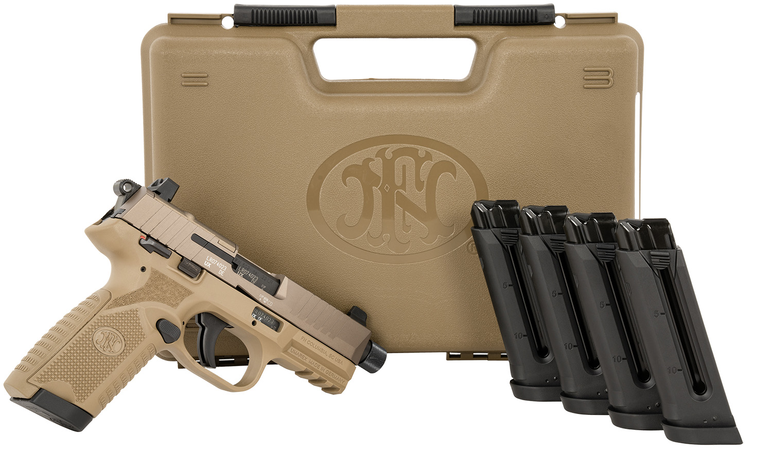 FN 66101682 502 Tactical 22 LR 10+1 4.60″ Black Steel Threaded Barrel, Flat Dark Earth Optic Ready/Serrated Slide & Polymer Frame w/Picatinny Rail, FDE Textured Polymer Grip, Ambidextrous, 5 Mags