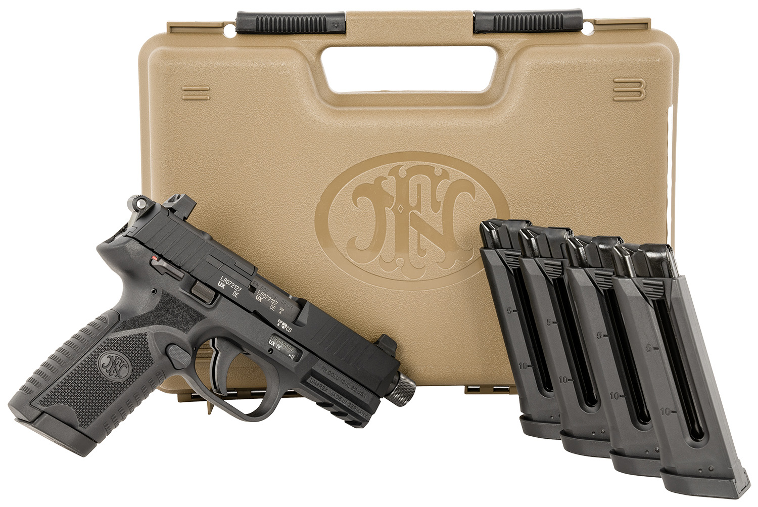 FN 66101684 502 Tactical 22 LR 10+1 4.60″ Steel Threaded Barrel, Black Optic Ready/Serrated Slide & Polymer Frame w/Picatinny Rail, Black Textured Polymer Grip, Ambidextrous, 5 Mags