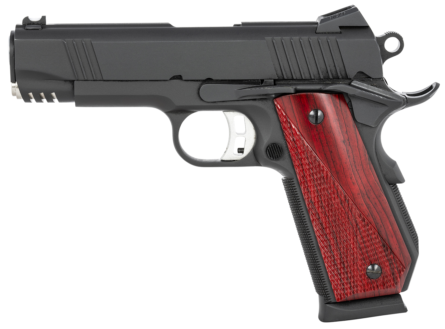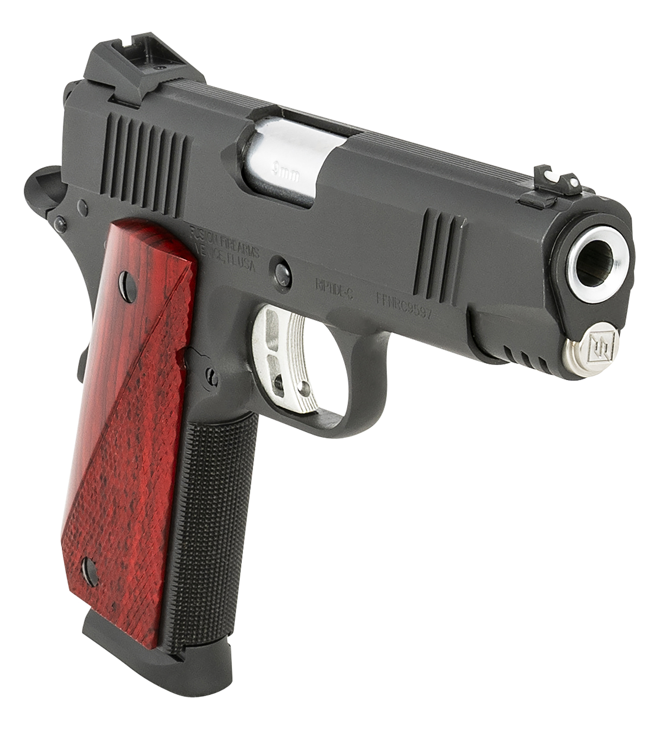 Fusion Firearms 1911RIPTIDEC9MM 1911 Freedom Riptide C 9mm Luger 4.25″ 8+1, Black, Beavertail Frame, Serrated Slide, Red Cocobolo Grip, 70 Series Design