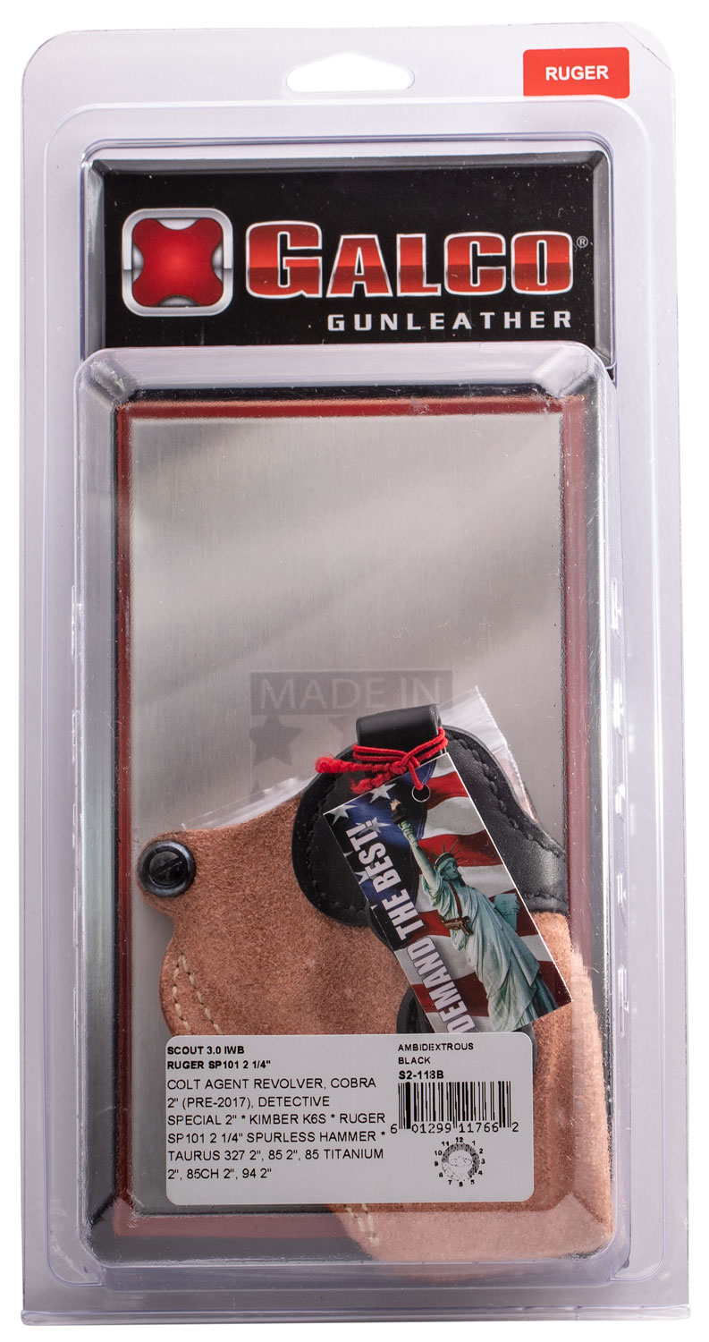 Galco S2118B Scout 3.0 IWB Natural/Black Leather UniClip/Stealth Clip Fits Ruger SP101 Ambidextrous