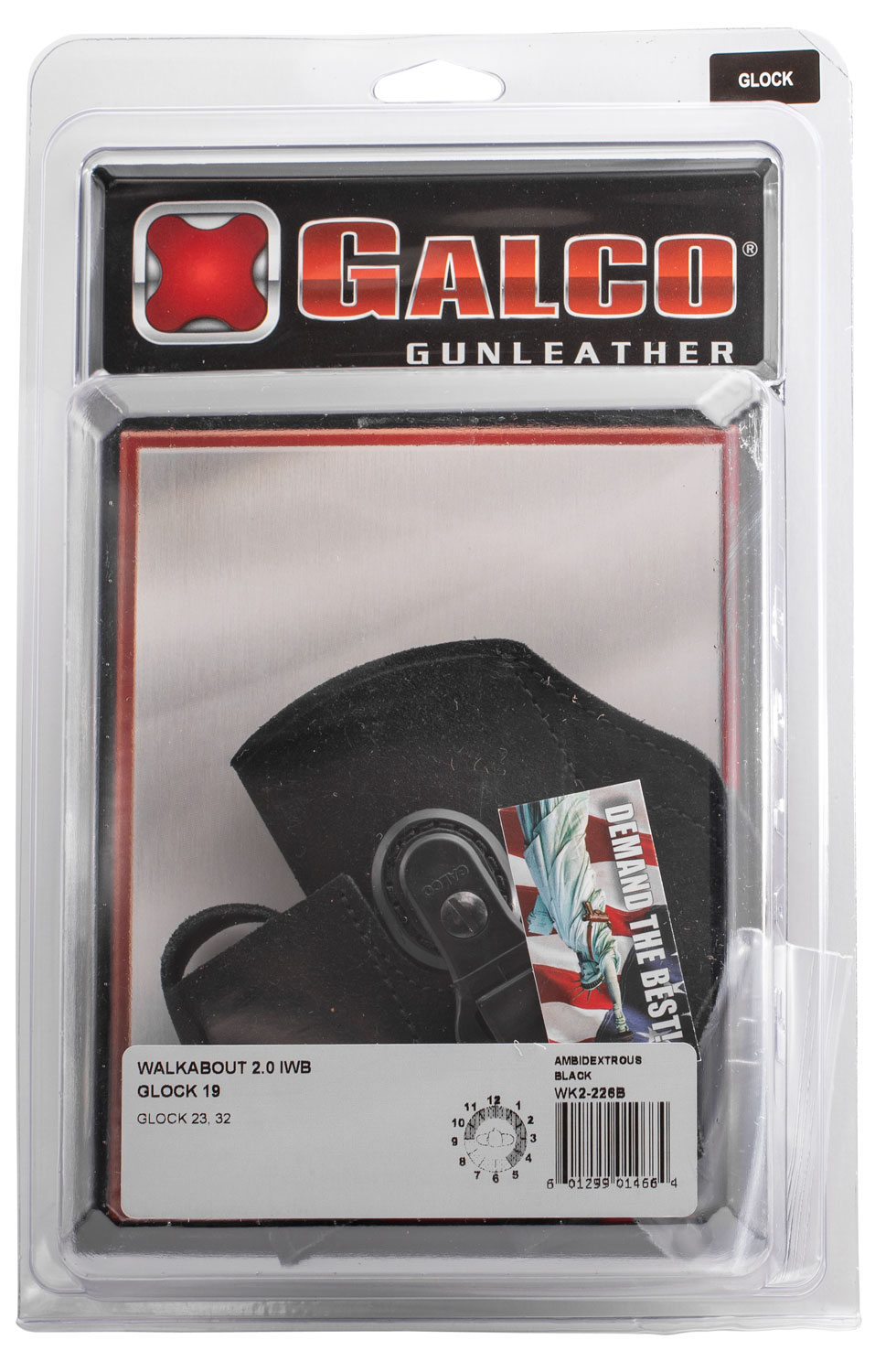 Galco WK2226B WalkAbout 2.0 IWB Black Leather Compatible w/ Glock 19X/19 Gen1-5/23 Gen2-5 UniClip/Stealth Clip Mount Ambidextrous