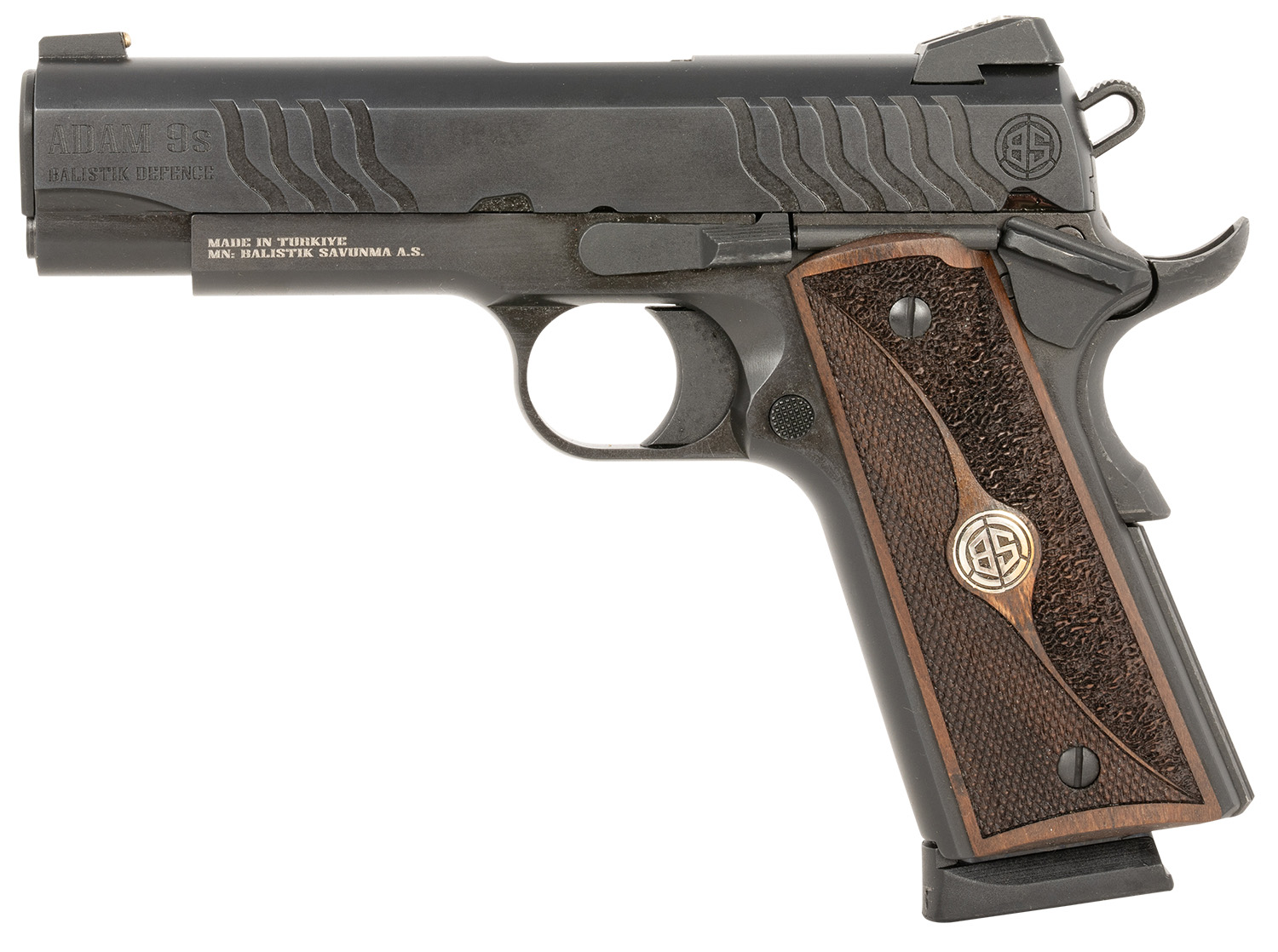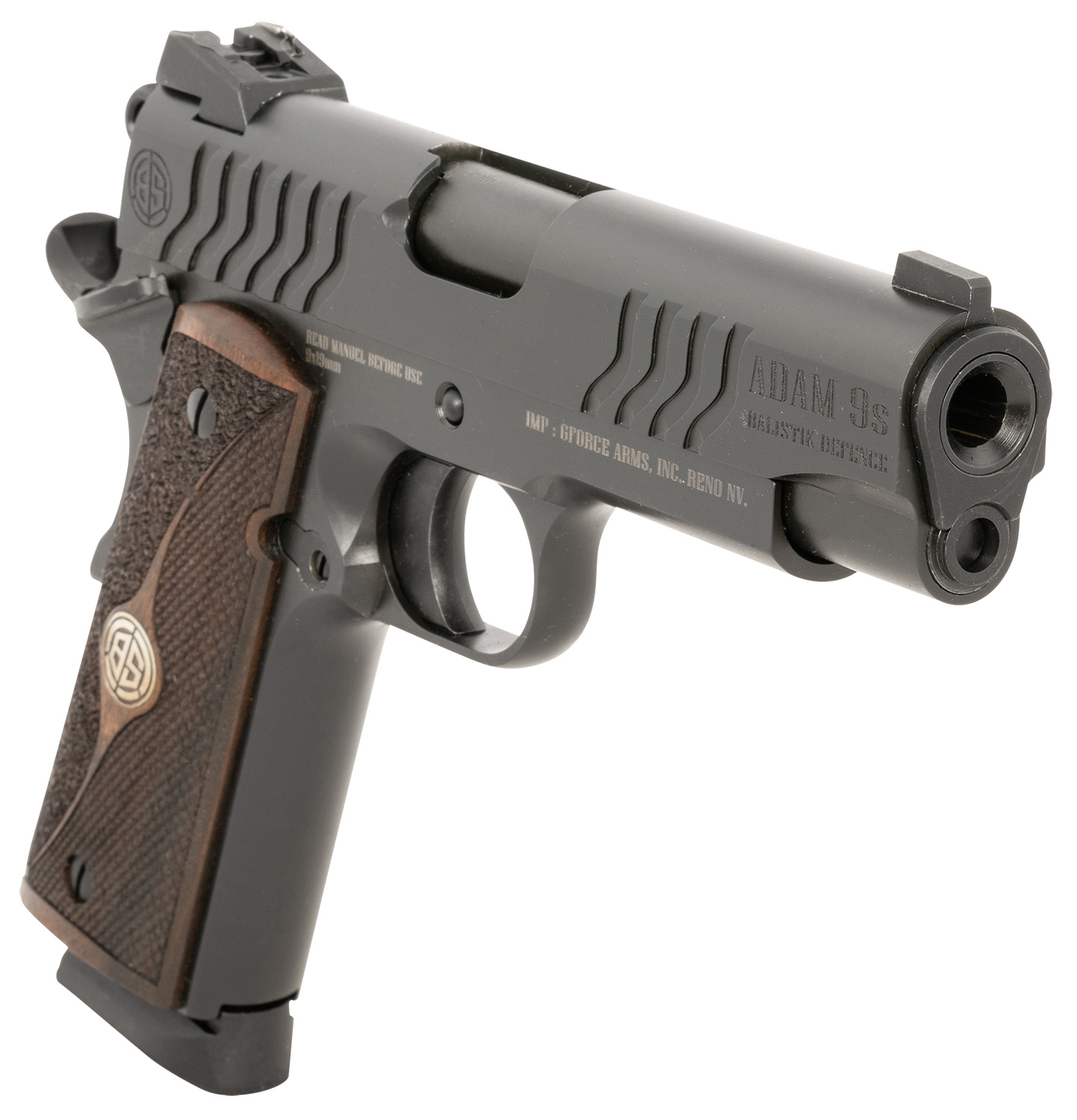 Gforce Arms BS9S Balistik Defense Adam 1911 Full Size Frame 9mm Luger 9+1 5″ Black Steel Barrel, Black Cerakote Serrated Steel Slide, Black Cerakote Steel Frame w/Beavertail, Walnut Grip