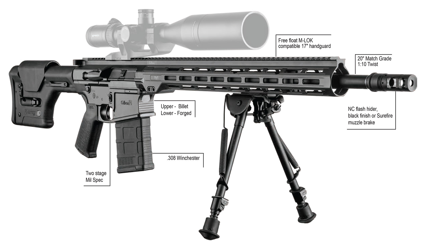 Gilboa G20308SAB Match 308 Win 20+1 20″ Heavy Match Grade Barrel w/Flash Hider, Nitride-Finished Bolt Carrier Group & Receiver, Picatinny Rail, 17″ M-Lok Free-Float Handguard, Two-Stage Trigger