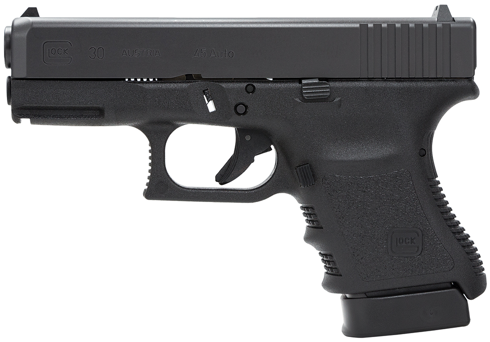 Glock PF3050201 G30 Short Frame *CA Compliant 45 ACP 3.78″ Barrel 10+1, Black Frame & Slide, Finger Grooved Rough Texture Grip, Safe Action Trigger