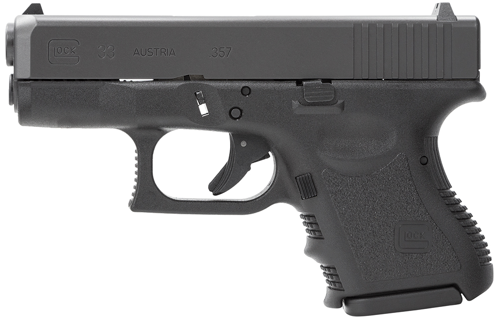 Glock PI3350201 G33 Gen3 Sub-Compact 357 Sig 9+1 3.43″ Black Polygonal Rifled Barrel, Matte Black Serrated Slide, Black Polymer Frame, Black Textured Finger Grooved Polymer Grip, Right Hand