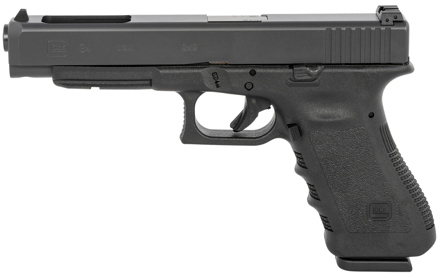 Glock UI3430103 G34 Gen3 Competition 9mm Luger 5.31″ Barrel 17+1, Black Frame & Slide, Finger Grooved Rough Texture Grip, Adjustable Sights, Safe Action Trigger (US Made)