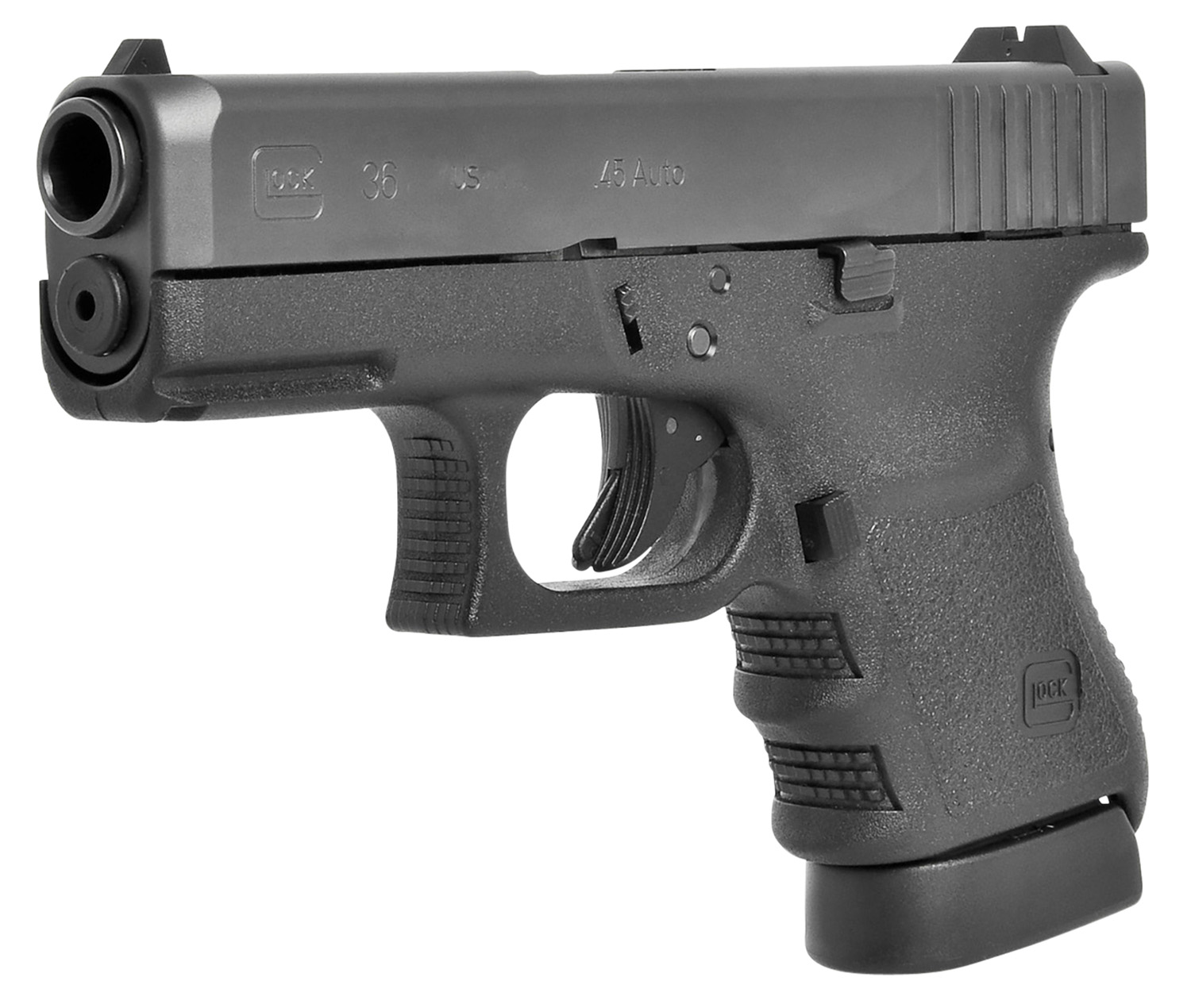 Glock UI3650201FGR G36 Sub-Compact 45 ACP 6+1 3.78″ Hammer Forged Barrel Matte Black Serrated Steel Slide Black Polymer Frame w/Picatinny Rail Black Textured Finger Grooved Polymer Grips Right Hand