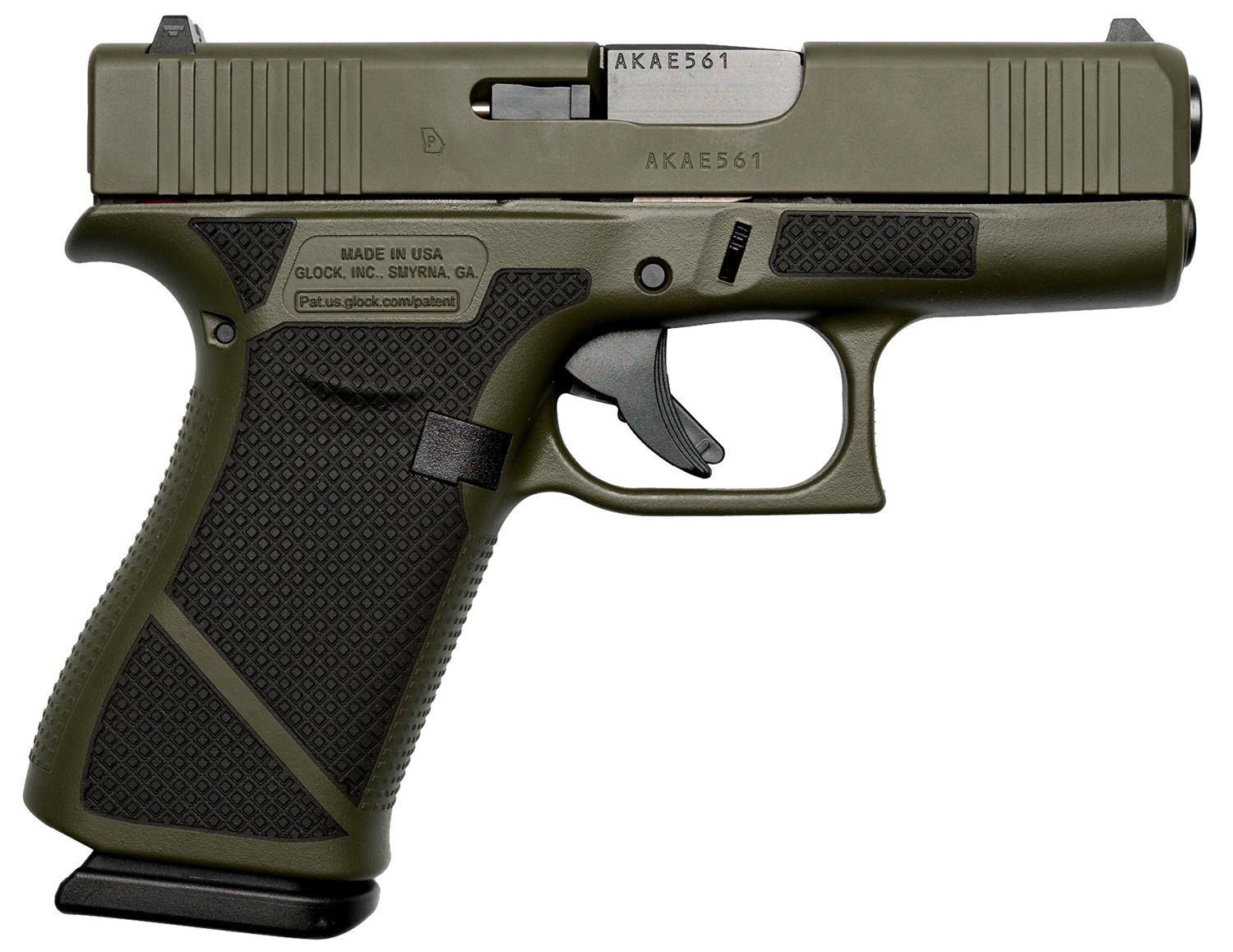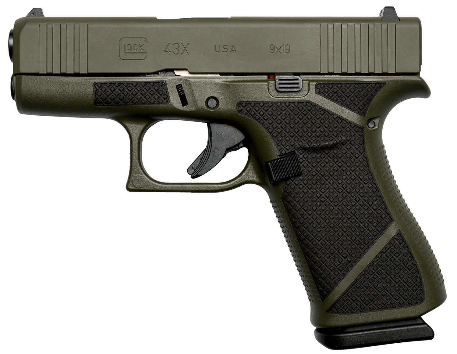 Weapon Works UX4350201-228081 G43X Sub-Compact Frame 9mm Luger 10+1 3.41″ Black Steel Barrel, OD Green w/Diamond Stippling Serrated Slide & Polymer Frame w/Beavertail, Black Textured Grip
