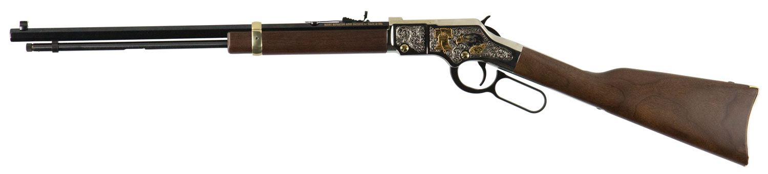 Henry H004GBA Golden Boy God Bless America Edition 22 Short Caliber with 16 LR/21 Short Capacity, 20″ Octagon Barrel, Nickel-Plated Metal Finish & American Walnut Stock Right Hand