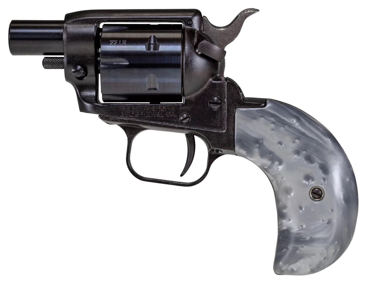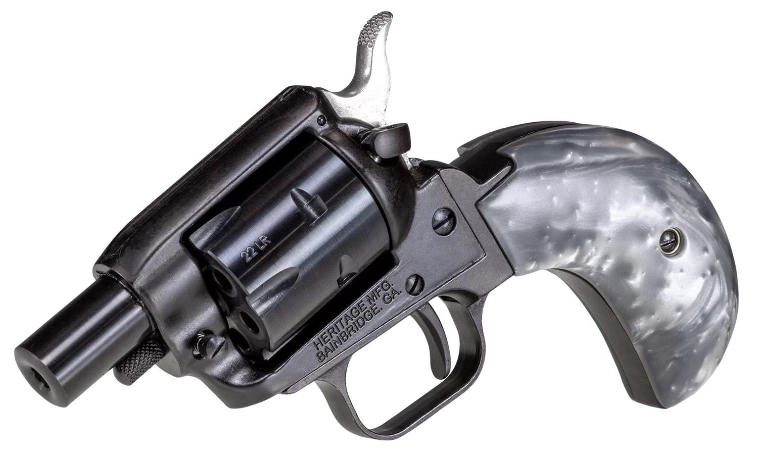 Heritage Mfg BK22B1BHGPRL Barkeep Boot 22 LR 6 Shot, 1.68″ Black Oxide Steel Barrel, Black Oxide Zinc Alloy Frame Black, Black Oxide Cylinder, Gray Pearl Grip, Hammer/Thumb Safety, Exposed Hammer