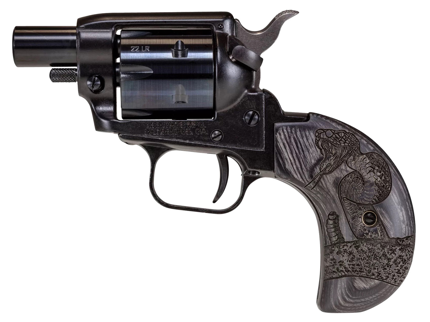 Heritage Mfg BK22B1BHWBRN2 Barkeep Boot 22 LR 6 Shot, 1.68″ Black Steel Barrel, Black Oxide Zinc Alloy Frame, Black Cylinder Wood Engraved Birdshead Grip, Hammer/Thumb Safety, Exposed Hammer